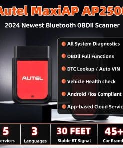 El Autel AP2500 es una versión mejorada de AP200 y AP200H diseñada para brindar la máxima conveniencia, cabe cómodamente en tu bolsillo. Es pequeño pero potente. Este lector de códigos bluetooth de nueva generación cuenta con escaneo de todos los sistemas, 5 funciones de servicio y 10 pruebas OBD2. Incluye un dongle Bluetooth para conectarse de forma inalámbrica al vehículo. Compatible con CAN FD y cobertura de autos 1996-2024, funciona con más de 45 marcas de automóviles principales y ofrece el uso gratuito de por vida para una marca de automóvil que elijas…