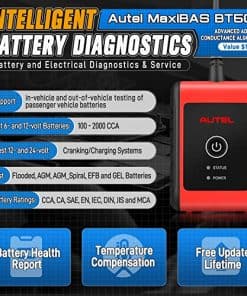 1. Un analizador de baterías imprescindible: este verificador de baterías de coche Autel BT506 te ofrece una forma fácil de analizar el estado de salud de la batería, ver el estado de carga de la batería y detectar fallas y baterías defectuosas. Adopta la tecnología avanzada de conductancia adaptativa, que puede obtener resultados de prueba de manera precisa y rápida. Los resultados de las pruebas no se limitan a SOH, SOC, CCA, corriente, calificación, resistencia, voltaje en vacío y cargado, valor de ondulación de carga, etc. Asegura que tus baterías siempre estén funcionando a un nivel óptimo.