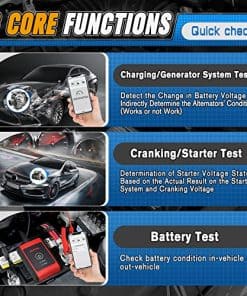 4. 3 Funciones básicas: Prueba de salud de la batería: indica si la batería está en buen estado de funcionamiento y proporciona consejos sobre si es necesario reemplazarla; Prueba de arranque: te ayuda a probar y analizar el motor de arranque para comprobar si funciona correctamente o no; Prueba de sistemas de carga: comprueba si el generador/diodo rectificador/corriente de carga es normal. Es mucho más conveniente que conducir millas para encontrar el taller de reparación de automóviles más cercano.