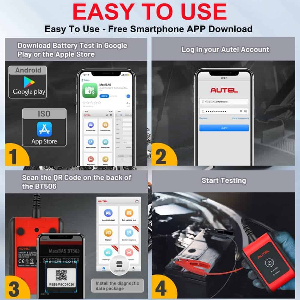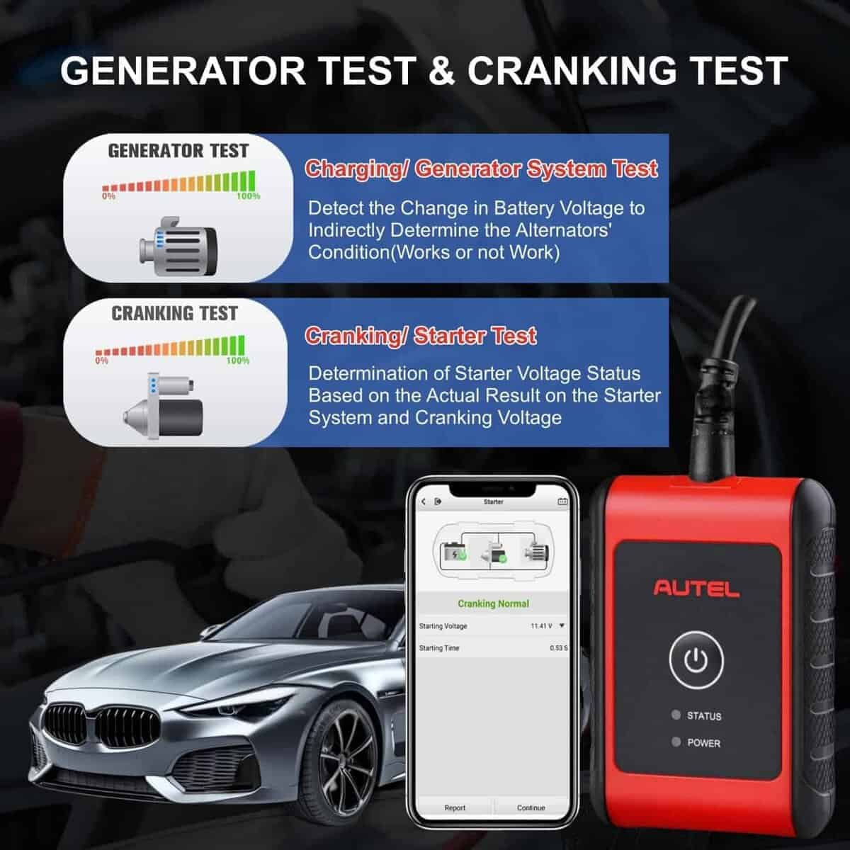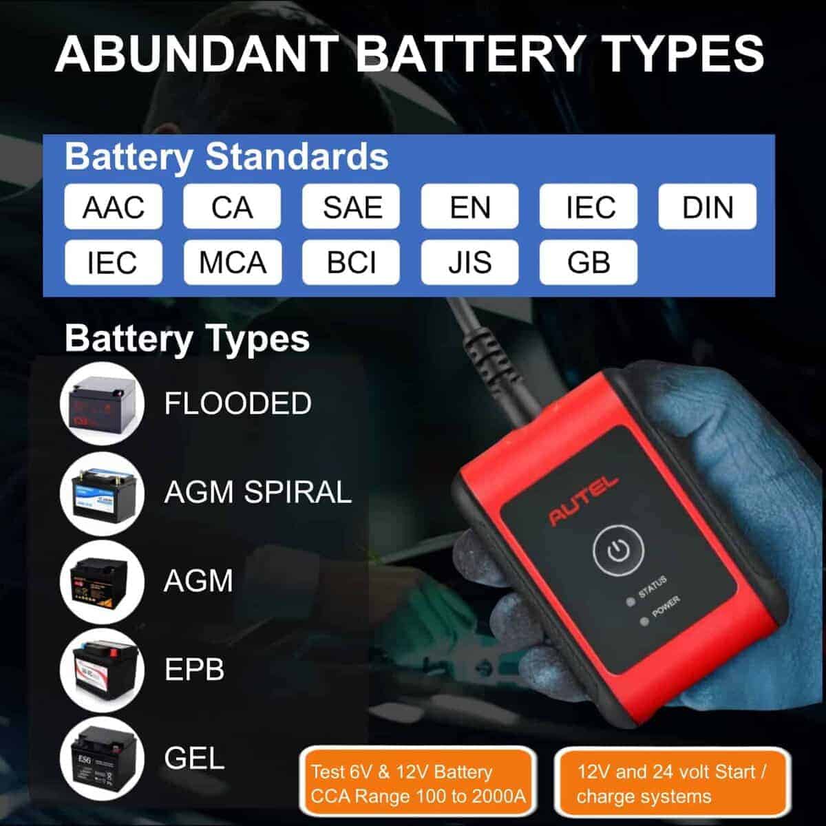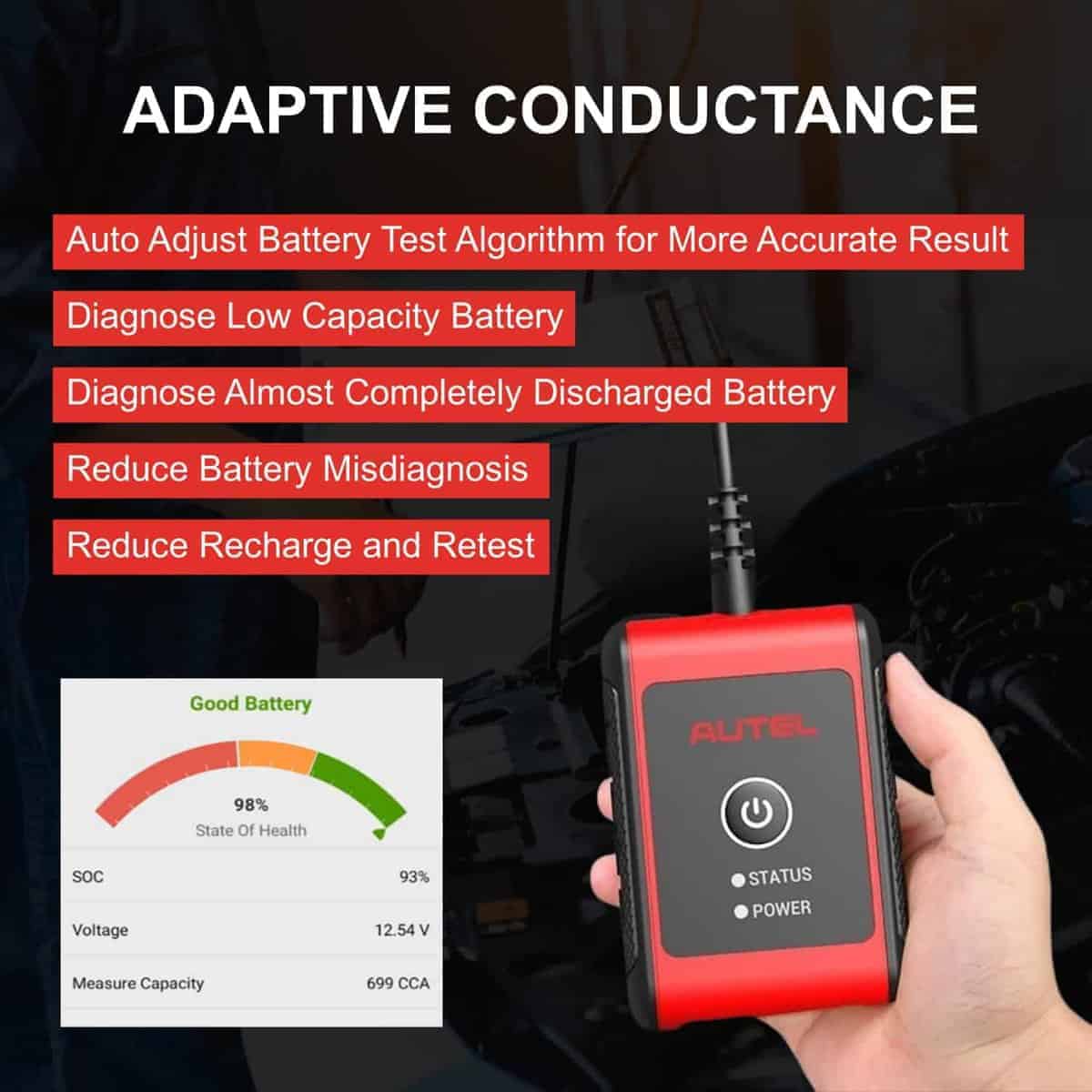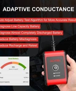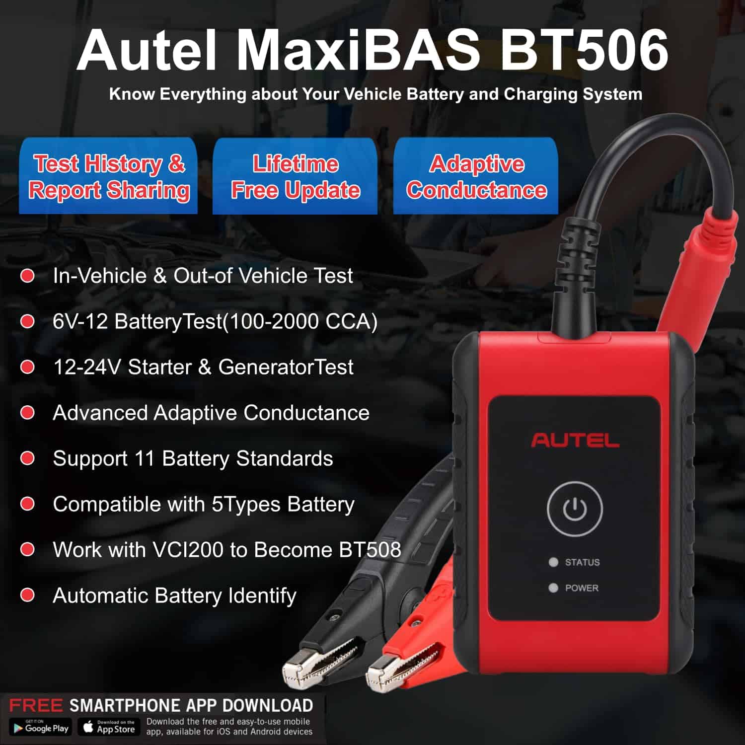Autel MaxiBAS BT506 es tu experto en baterías de vehículos. Este probador de baterías automotriz puede probar todas las baterías de 6V y 12V de 100-2000CCA, incluidas las baterías más comunes de tipo Flooded, AGM, AGM Spiral, EFB y GEL, y es compatible con los estándares CCA, CA, SAE, EN, IEC, DIN, JIS y MCA. Con la tecnología de conductancia adaptativa, el Autel BT506 puede realizar pruebas precisas de energía sin agotar las baterías, lo que garantiza resultados de prueba super precisos sin repeticiones ni diagnósticos incorrectos. Además, este probador de baterías ofrece pruebas de arranque y carga para evaluar el estado del sistema de arranque del vehículo y dar sugerencias de mantenimiento. Fácil de usar, el Autel BT506 se empareja con tu teléfono celular para mostrar información detallada del vehículo y la batería, con la posibilidad de verificar fácilmente el historial de pruebas. También se integra perfectamente con las herramientas de diagnóstico inalámbricas de Autel para realizar pruebas más detalladas y completas en los vehículos. No pierdas la oportunidad de tener en tu garaje la herramienta de prueba de batería más completa y precisa del mercado: Autel MaxiBAS BT506.