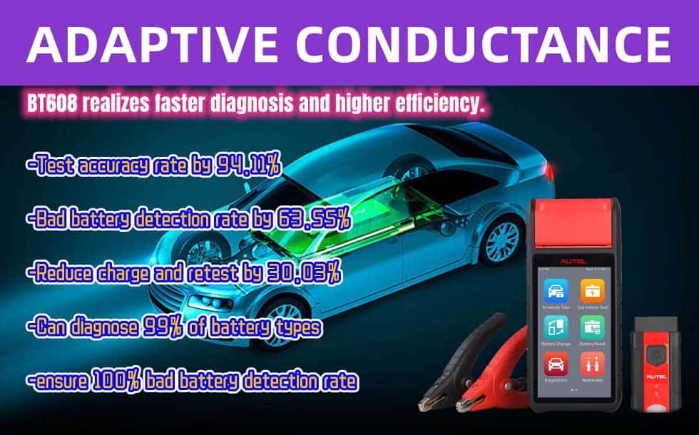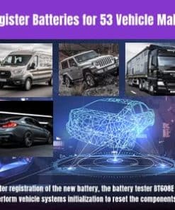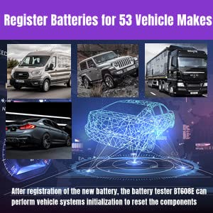 El BT608 admite pruebas de baterías de vehículos de pasajeros en vehículos e in-victoriales. Puede probar baterías de 6 y 12 voltios: 100 – 3000 CCA; sistemas de arranque/carga de 12 y 24 voltios; y baterías inundadas, AGM, espirales AGM, EFB y GEL. Es compatible con CCA, CA, SAE, EN, IEC, DIN, JIS y MCA. Proporciona una guía ilustrada para la posición y prueba de la batería. Imprime informes de prueba a través de la impresora térmica incorporada; lee y borra códigos de todos los sistemas disponibles. SO: Android 9.0, PANTALLA: pantalla táctil LCD de 5,5» con resolución de 720 1280, Conectividad: wifi; usb2.0, tipo c; bluetooth5.0+EDR Cámara: 8 Megapíxeles Batería interna: 7,7 V, 3000 mAh Peso: 510 g (1,12 lb) Dimensión (L x W x H): 204 mm (8.03 ) x 90 mm (3.54 ) x 32 mm (1.25 )
