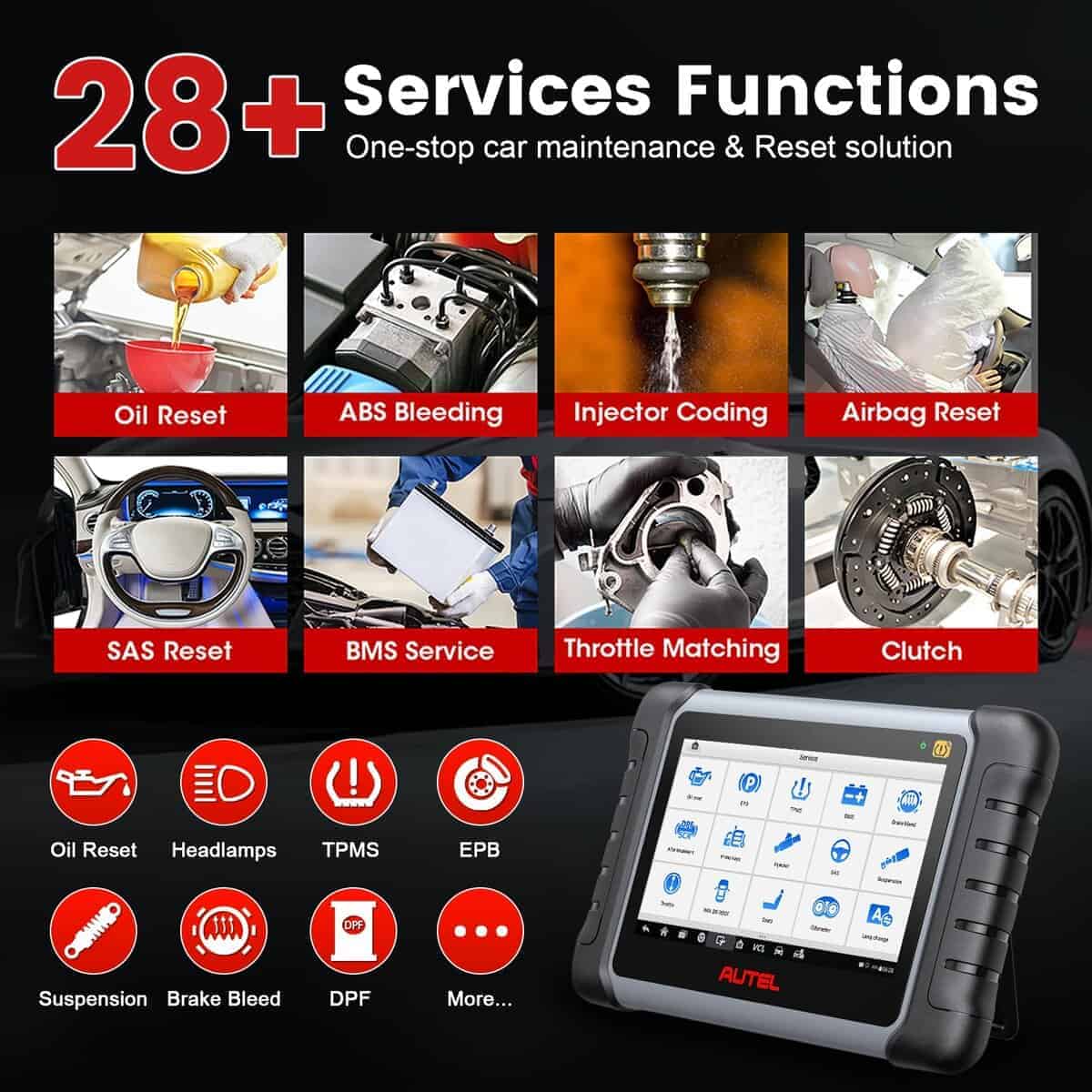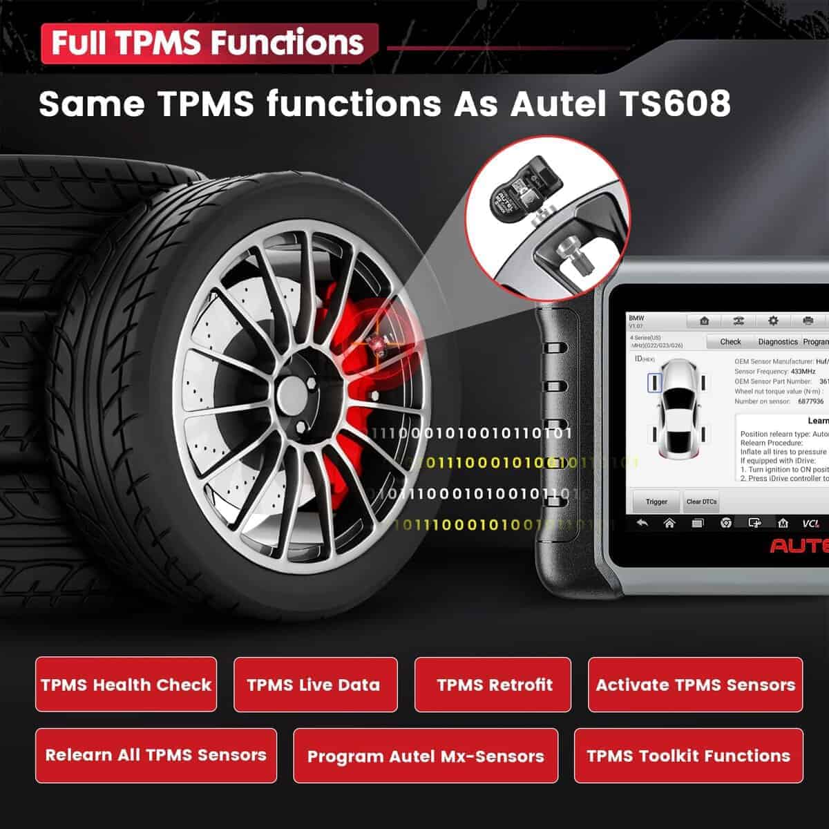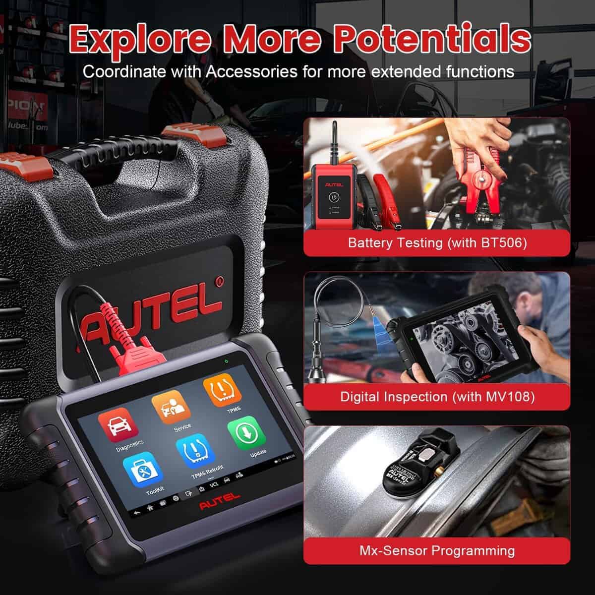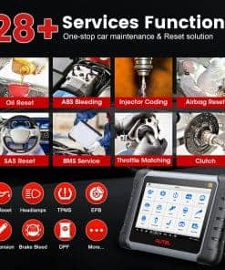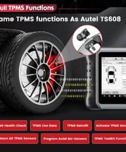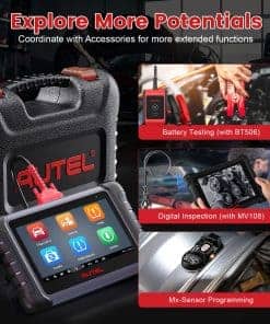 Autel MK808Z-TS es una herramienta profesional de diagnóstico de TPMS de automóviles capaz de hacer Retrofit de TPMS, programar Autel MX-Sensor, activar / reajustar todos los sensores OEM TPMS conocidos, verificar la salud del sistema monitor de presión de neumáticos TPMS y diagnosticar, mostrar datos en vivo de sensores TPMS con un clic, leer y borrar códigos DTC de TPMS, etc. Ofrece 4 métodos diferentes para sensores TPMS OEM. También puede enviar señales de comando a varios ECUs y probar diversos actuadores actuadores gracias a su funcionalidad bidireccional, lo que permite determinar el estado o funcionalidad de los componentes o módulos probados en segundos. Además, ofrece más de 28 modos de servicio como reseteo de frenos, reseteo de EPB, reseteo de aceite, reseteo de SAS, codificación de inyectores, reseteo de SRS, reseteo de BMS, y más. Es compatible con la mayoría de los vehículos OBD2 posteriores a 1996 en todo el mundo y es capaz de acceder a todos los sistemas disponibles para realizar el diagnóstico. Adicionalmente, puede trabajar con Autel BT506 para realizar pruebas de batería, prueba de arranque y prueba de generador, así como con Autel MV108 para obtener imágenes de alta definición de piezas pequeñas o áreas confinadas en su pantalla de 7 pulgadas.