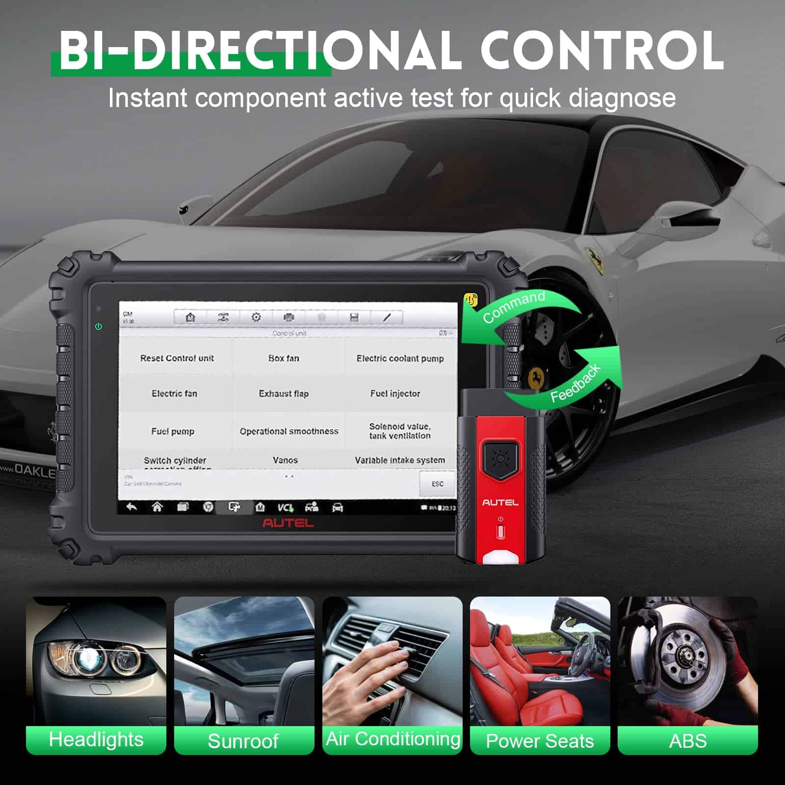 Autel MaxiCOM MK906 Pro-TS es una herramienta de escaneo de control bidireccional que cuenta con una prueba activa instantánea de componentes para conocer las piezas defectuosas en minutos. MK906 Pro-TS es capaz de realizar adaptación inicial, autoaprendizaje o alguna función de auto detección, ofreciendo hasta 36 servicios como Reinicio de Aceite, Sangrado de ABS, EPB, SAS, Codificación de Inyectores, Aprendizaje de la Aceleración, IMMO, SRS, Configuración de A/F, Adaptación de Transmisión, Cilindro, Odómetro, Ajuste del Sensor de Posición del Cigüeñal, etc. Autel MK906 Pro-TS es capaz de trabajar con el probador de baterías BT506, la cámara de inspección MV108 y el osciloscopio MP408 para lograr un diagnóstico más intuitivo y más funciones. Comparado con otras marcas, Autel MK906 Pro-TS puede además soportar el acceso a la puerta de seguridad FCA Auto Auth posterior a 2017 y soportar el acceso a la puerta Renault V4.50 o versión más nueva para realizar un diagnóstico, control bidireccional y funciones de codificación más convenientes.