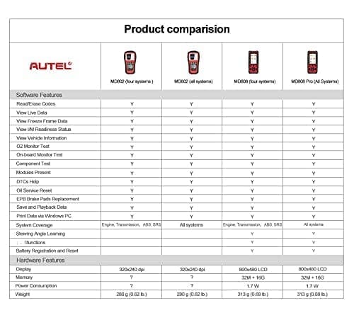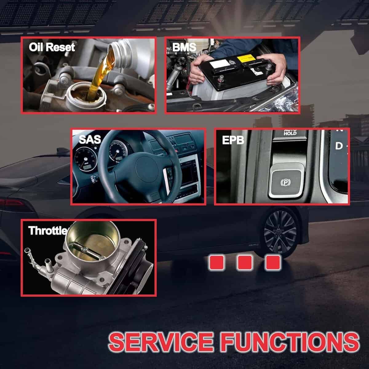 Soporta funciones de Leer/Borrar Códigos y Datos en Vivo para TODOS los sistemas. Leer y borrar códigos de falla, controlar y probar sistemas BMS/Reset de Aceite/SRS/EPB/DPF. Soporta reset de servicio de aceite. Soporta registro y reset de batería. Servicio de partículas diésel incluyendo regeneración forzada. Funcionalidad de reset del sensor de ángulo de dirección (SAS). Recalibrar la pastilla de freno de estacionamiento después del reemplazo. Resetear kilometraje de servicio y intervalos de servicio. Apagar la luz de advertencia de freno del ECU. Realizar pruebas de monitor O2, monitor a bordo, preparación I/M y pruebas de componentes. Imprimir informes de diagnóstico mediante conexión a PC. Cobertura global de OBD II para fabricantes y modelos nacionales, asiáticos y europeos de los Estados Unidos. Todos los protocolos OBD II, los 10 modos de prueba y soporte mejorado para el modo 6 de OBD II. Soporta Idioma Inglés y Español. Especificaciones Procesador: Procesador ARM Thumb (400 MHz) Memoria: 32MB, 166 MHz Pantalla: LCD de 4.0 pulgadas con resolución de 800×480 Conectividad: Mini USB: 2.0 Tarjeta Micro SD (16GB) Consumo de Energía: 1.7 W Temperatura de Operación: -10 C a 60 C (14 F a 140 F) Temperatura de Almacenamiento: -20 C a 70 C (-4 F a 158 F) Humedad de Operación: 5% – 95% sin condensación Caja: Caja de plástico resistente con protección de goma Dimensiones (An x Al x Pr): 202 mm x 92 mm x 35 mm (8.35 x 3.62 x 1.4 ) Peso: 313 g (0.69 lb.)