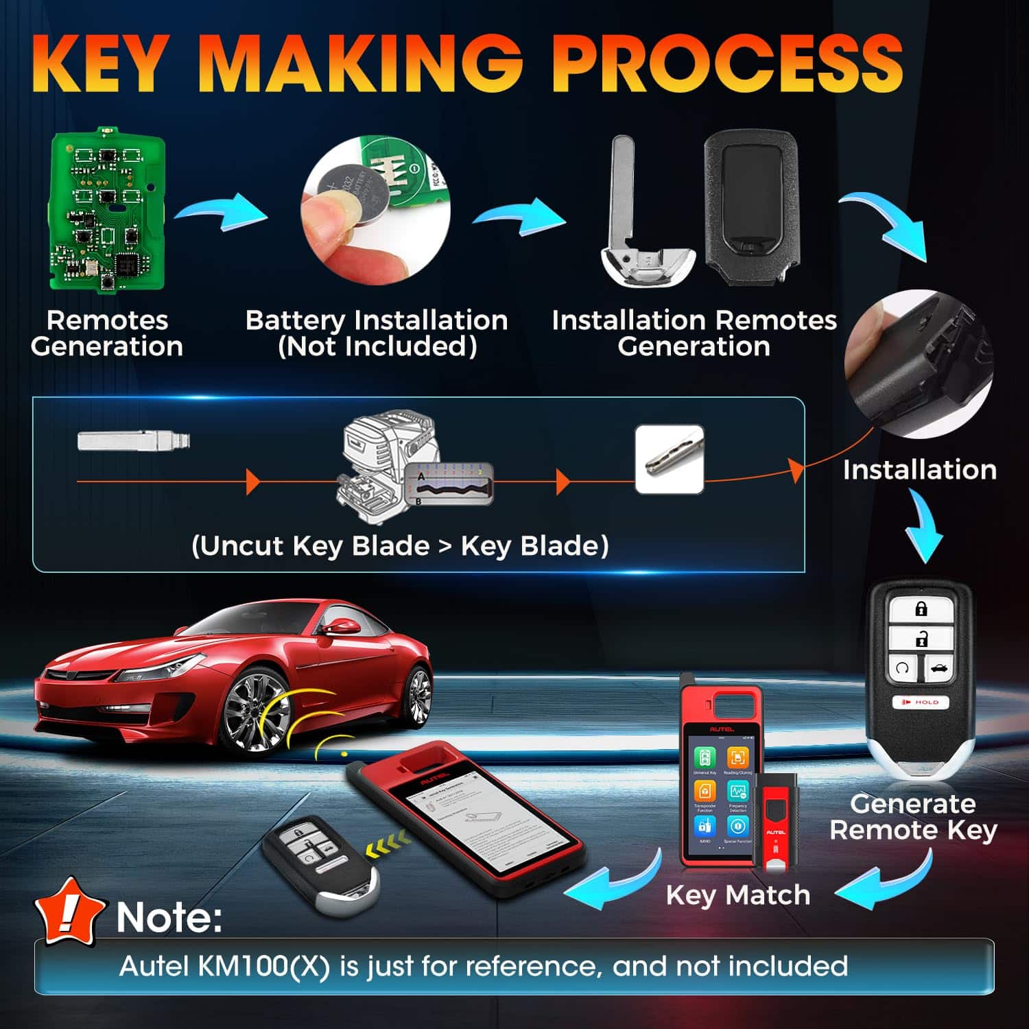 Autel MaxiIM IKEYHD005AL es una llave S-m-Art programable de calidad OE diseñada específicamente para el estilo Honda. Esta llave en blanco de 5 botones es un reemplazo preciso y seguro para tu llave original. Con un rango de control remoto ultra largo de 130FT/40M, podrás acceder a tu vehículo de forma rápida y eficiente. La llave puede ser programada con las herramientas Autel MaxiIM, como KM100(X), IM608 PRO 2, IM508S, IM508S PRO, IM608 II, IM608S II, IM608 PRO II, entre otras. Por favor, ten en cuenta que la llave S-m-art de Autel no es universal y su compatibilidad depende de la cobertura de vehículos de la herramienta utilizada. Si necesitas ayuda con la programación, no dudes en contactarnos. ¡Ofrecemos soporte continuo para garantizar una experiencia sin problemas!