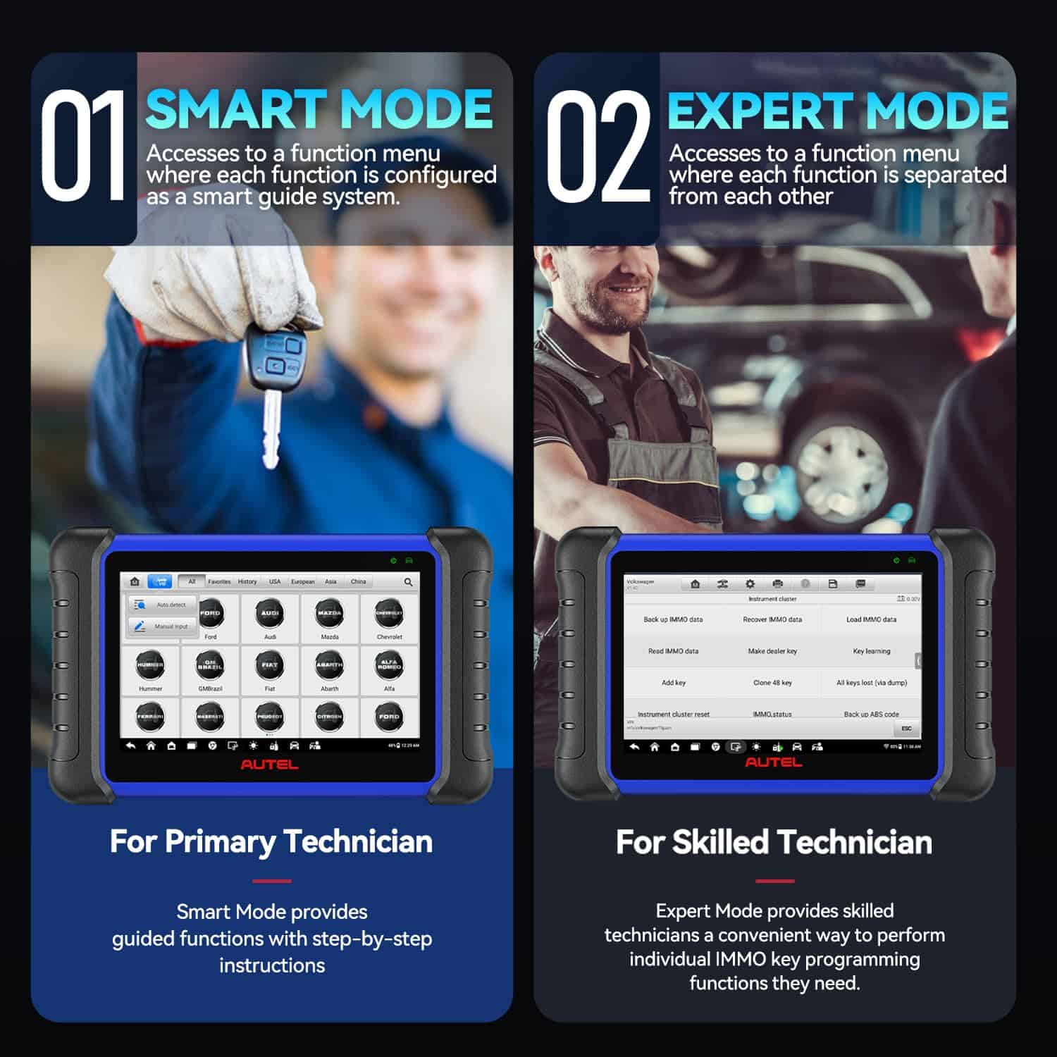 1. Escáner Autel 2024 completamente nuevo IMMO IM508S Autel ha actualizado MaxiIM IM508S con los hardware y software más nuevos, haciéndolo poderoso y mejor que MaxiIM IM508/KM100 con una cobertura y funcionalidad más amplias. Características destacadas: Fácil de usar Android 11 5 veces más rápido Quad-Core RockChip RK3566 Más grande 4G+64GB para rápida ejecución y almacenamiento de datos Autel Cloud Report Management 5G y 2.4GHz WiFi dual para actualizaciones eficientes. NO Restricción de IP 21+ Idiomas AutoAuth para 2017+ FCA y Renault SGW. 2. Programador de llaves XP200 para programación de ECU IMMO Diseñado específicamente para leer datos de chips de llave de vehículos Volkswagen, clonar y generar llaves exclusivas, leer/escribir datos de EEPROM a bordo y leer/escribir MCUs Freescale 9S12. Al trabajar con una herramienta de diagnóstico y PC que están cargados con software de programación, el programador de llaves XP200 puede leer/escribir datos de chips de llave de forma rápida y precisa para multi-marcas. Las funciones son específicas para cada vehículo, envíe el VIN para verificar a través de: autelofficial @ outlook . com. 3. Trabaje con XP400 Pro para Extender las Funciones de IMMO (Adquiera por Separado) No tiene que pagar 3000+ dólares para un escáner de IMMO más avanzado, pero puede disfrutar de las mismas funciones de programación de llaves fob IMMO que IM608S II/IM608 II/IM608 Pro II. Trabajando con XP400 Pro, IM508S amplía su capacidad para admitir funciones IMMO como BMW CAS4 K-e-y Learning, IMMO ECU Read & Write, MC9S12 Encryption Chip Read & Write, IC Card Read & Write, Mercedes Infrared K-e-y Read & Write, Remote Frequency Detect y más. 4. 40+ Servicios de Mantenimiento – Maneje fácilmente sus reparaciones diarias Autel IM508S admite funciones especiales de sistemas completos, como CKP Relearn, Codificación de inyectores, Reinicio de aceite, EPB, SAS, BMS, Sangrado ABS, Reinicio del acelerador, Suspensión de aire, etc. y la cobertura está un 10%+ por delante de los competidores y sigue sumando. Ejemplo: To-yota admite ampliamente 241 funciones especiales como registro de ID/registro de número de neumáticos, registro de código de llave, etc., y la cobertura supera ampliamente a la de los competidores. 5. Prueba Activa Bidireccional Completa – Diagnóstico más profundo El escáner de taller 2024 IM508S no solo es una herramienta IMMO, sino también un potente escáner bidireccional. Puede realizar pruebas activas reales que pueden enviar comandos a la ECU de los vehículos para hacer funcionar los actuadores y realizar pruebas de actuadores, como sangrado de ABS, subida/bajada de ventanas, encendido/apagado, etc., ayudando a los técnicos a encontrar rápidamente las partes defectuosas y ubicar problemas. Las funciones no son universales. Por favor envíe el VIN (17 dígitos) a autelofficial @ outlook . com para verificar. 6. Diagnósticos de Sistema Completo de Nivel OE – Haga un chequeo completo El escáner de taller profesional IM508S de Autel puede acceder rápidamente a la ECU de los vehículos para hacer escaneos completos a través del cable OBD2 incluido e identificar autos por AutoVIN o Ingreso Manual. Realiza diagnósticos de nivel OE, lee información de la ECU, lee/borra DTCs, ve todos los datos de sensores en vivo en 4 formatos (texto/gráfico de onda/histograma/diagrama en metro), realiza pruebas activas, imprime los datos de diagnóstico que necesita. ¡Domine la situación de los autos con unos pocos clics simples! 7. Garantía de 1 Año y 1 Año de Actualizaciones de Software Gratis Al comprarlo, el último escáner IM508S de Autel ofrece 12 meses de garantía, 30 días de reembolso y reemplazo y servicio postventa 24/7/365, con 1 año (12 meses) de actualización de software en línea gratuito. Puede seguir usando el software actual normalmente incluso después de que expire el período de 1 año de actualización gratuita. Para agregar idiomas como el español, por favor contacte a autelofficial @ outlook . com con el S/N (12 dígitos, en la parte trasera del dispositivo) para añadir idiomas gratuitamente. 8. Autel Cloud Report Management ¡Esta es una función útil de intercambio de datos! Con ella, puede subir informes de diagnóstico a la Nube de Autel y compartir informes instantáneamente con sus clientes a través de código QR/mensaje de texto/correo electrónico fácilmente, ¡ya no está limitado por correo electrónico! Ellos pueden ver los informes en cualquier momento. Al igual que otros espacios en la nube, es un jardín trasero para sus informes de diagnóstico que le ayudará a mejorar la centralización de datos, compartir de manera simple y rápida, reducir la carga de memoria y mejorar la eficiencia del trabajo.