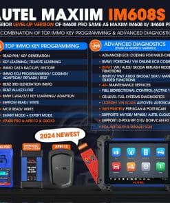 2. Programación de Llaves y Controles de Vehículos Si buscas una herramienta de programación de llaves de primera línea que pueda funcionar, funcionar mucho, funcionar rápido, la nueva versión 2024 de Autel IM608S II vale la pena. Comparado con la herramienta de nivel de entrada IM508S, IM608S II con XP400 Pro mejorado supera su capacidad y puede trabajar en la mayoría de los autos con sistemas IMMO avanzados, como Benz, BMW, VW, etc. Realiza funciones de IMMO completas a una velocidad de trabajo 3 veces más rápida que IM508S, como IMMO / EEPROM / MCU / lectura / escritura del motor, añadir / eliminar / aprender llaves, etc.