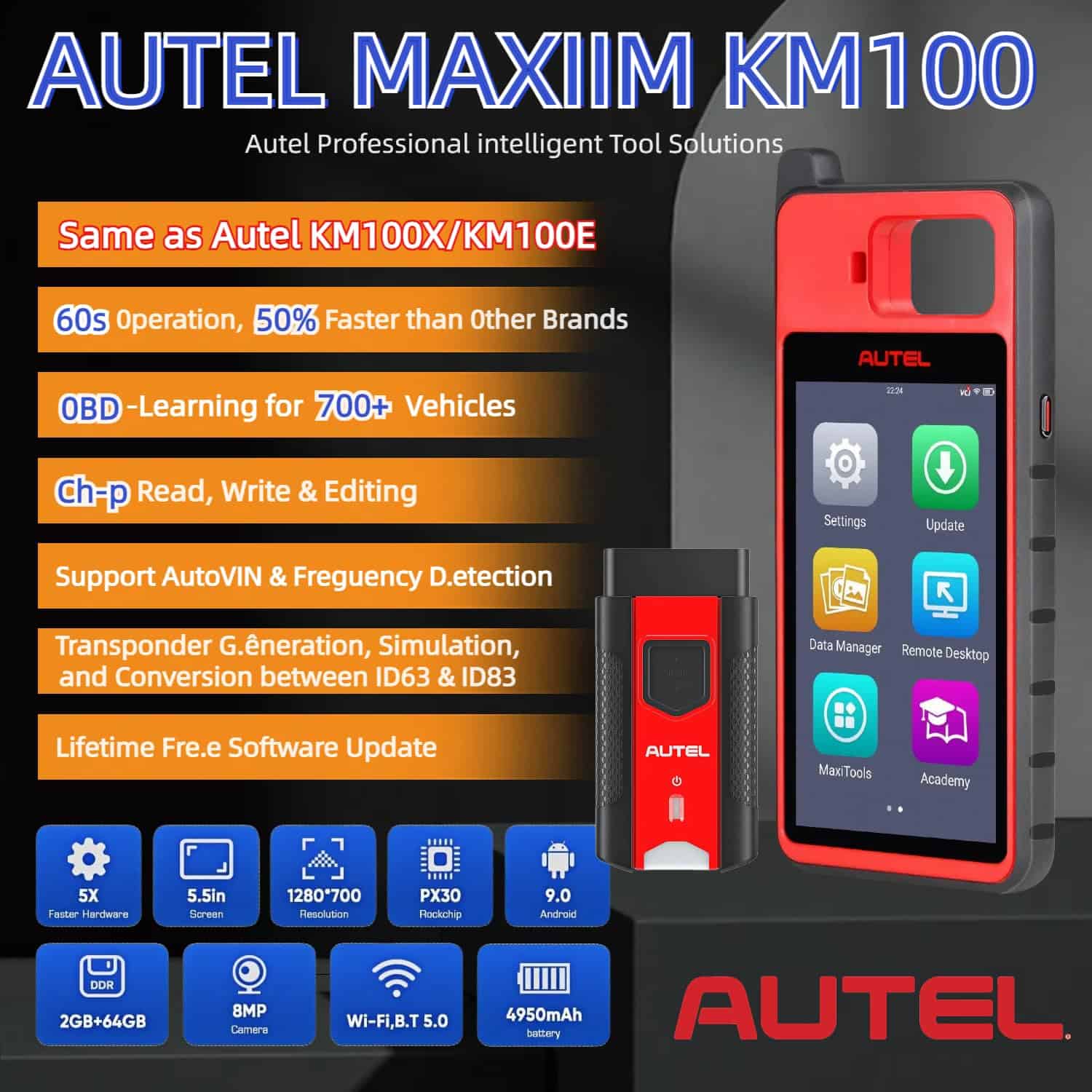 7. Renovación de por vida sin tarifas, 2PCS incluidos. El escáner Autel KM100 (X) está diseñado a medida para mecánicos particulares, solucionando todos tus problemas. Autel KM100 X viene con 2 piezas, compatible con frecuencias de 868m/915m y 315m/434m, fácil de obtener lo que necesitas. Actualización de por vida sin tarifas, Autel KM100 X es la herramienta de escaneo de vehículos más rentable del mercado.