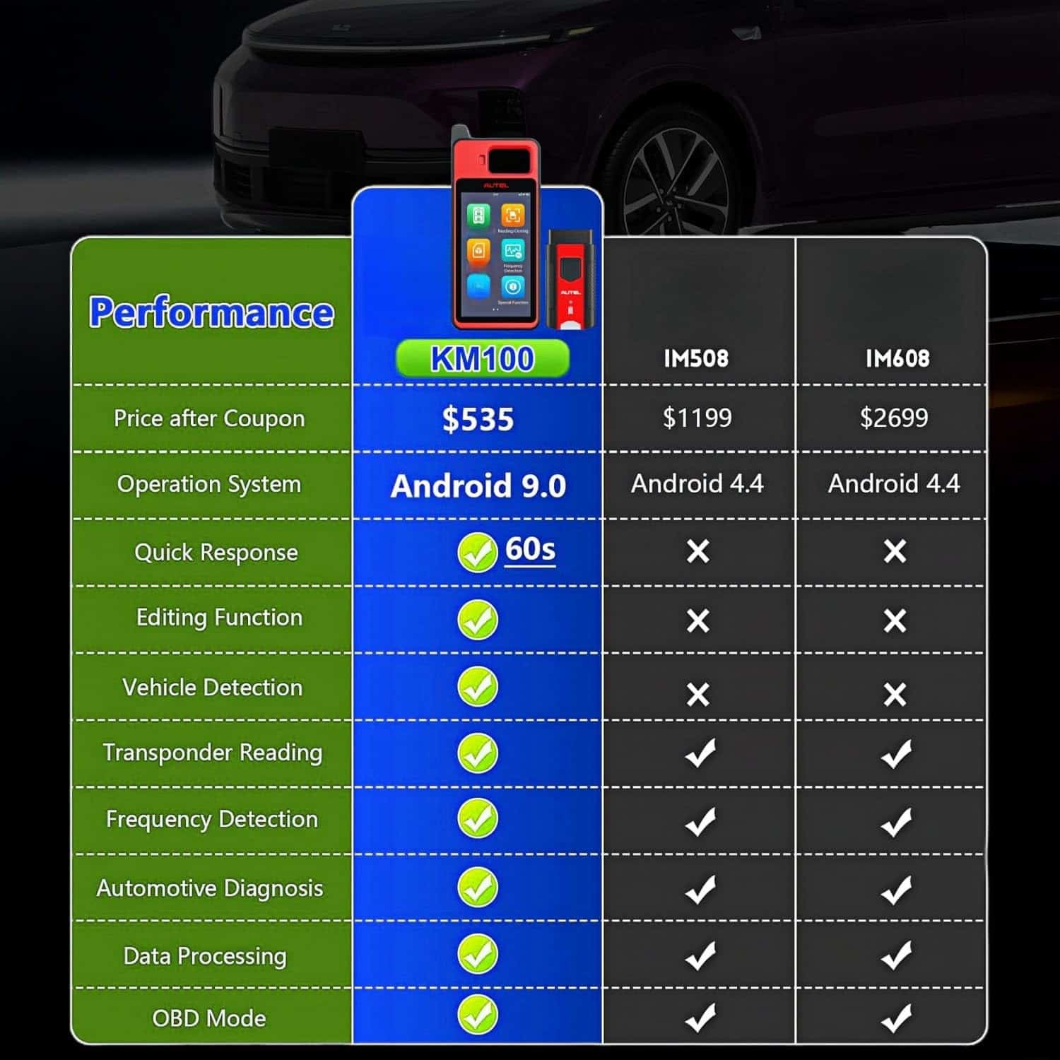 1. ¡Atención! Por favor, verifique la compatibilidad primero. KM100 NO funciona en todos los autos. Los servicios no son universales, por favor, verifique la compatibilidad primero. Autel MaxiIM KM100/KM100X/KM100E no pueden soportar vehículos de la marca Benz. Además, la política NS F no afectará el uso del Autel KM100.