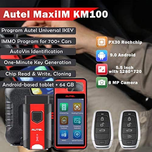 1. 2023 ALL IN ONE KEY PROGRAMMER El Programador de Llaves Autel KM100 es la última herramienta inteligente de programación de llaves para automóviles de Autel en 2023, equipada con características sólidas como Lectura/Escritura/Clonación de Chips, Simulación de Transpondedores, Servicios IMMO, Generación de Llaves de 60s, Detección de Frecuencia 10+ Funciones Especiales AutoVIN y Escaneo VIN/Licencia, etc.