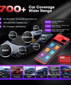 1. Recordatorio cálido 1) Autel KM100 (X) / KM100 / KM100E no pueden trabajar para autos Benz Porsche Renault. 2) No soporta A K L para Ford GM Toyota Lexus Renault. Por favor, verifique la compatibilidad. 2. 2025 Autel KM100 (X), Renovación Vitalicia sin Cuotas Herramienta de programación Autel KM100 (X), diseñada a medida para mecánicos aficionados y hágalo usted mismo, resuelve todos sus problemas. Generación en 60 segundos, lectura/ escritura/ borrado de transpondedores, simulación de chips, aprendizaje I, Ajuste OBD I, 10+ Funciones Especiales, AutoVIN y Escaneo VIN/ Licencia, Detección de Bobina de Encendido, Detección de Frecuencia, etc. Autel MaxiIM KM100 (X) cubre los 100 mejores modelos de venta de los últimos 10 años en Estados Unidos. 3. Generación en 60 segundos La herramienta de escaneo de diagnóstico de vehículos Autel MaxiIM KM100 (X) puede penetrar en el módulo del auto y escribir los datos al nuevo en 60 segundos, ahorrando selección manual de menús. Autel KM100 X cubre más de 700 vehículos populares en los últimos 10 años, de marcas como Volkswagen, Honda, Toyota, BMW, Land Rover, Ford, etc. Autel MaxiIM KM100 también permite actualización y edición de transpondedores para 20 protocolos. 4. Versión Lite de IM508S, Incorpora APB112 por la Mitad de Precio Autel KM100 (X) tiene integrado APB112 (valor de $259) para mejorar la generación y la I. Puede ayudar a recolectar datos de chips enviados por la bobina de encendido, soporta Recolección de Datos de Chip 46, 4D, Cálculo de Contraseña Inteligente 46, Emulación de Chip 46, Emulación Inteligente Toyota 4D (94/ D4, 98), Emulación Inteligente Toyota H (88/ A8, A9, 30), etc. Autel KM100X puede trabajar con Gbox2 para mejorar la generación y la velocidad de I. 5. Emparejamiento de I: Aprendizaje/ Agregar; Auto VIN La herramienta de programación Autel MaxiIM KM100 X viene con funciones avanzadas de I, incluyendo Aprendizaje, Aprendizaje de Control Remoto y Agregar Control Remoto, leer código PIN/ CS, Restablecimiento/Codificación del ECU de I, Respaldo de Datos de I, etc. Esta herramienta de aprendizaje también cuenta con AutoVIN y Escaneo VIN/ Licencia, que pueden identificar con precisión los datos del auto con solo un toque. 6. Lectura/ Borrado/ Edición de Transpondedores, KM100 (X) como Simulación Comparado con transpondedores de fábrica originales, Autel KM100 (X) puede hacer frente fácilmente a todos los problemas complejos relacionados. La función de transpondedor puede leer tipo de chip, tipo de I, ID de transpondedor y modo de código, generación de transpondedor, simulación de transpondedor, conversión entre ID63 e ID83 para Ford. La simulación profesional de chips ayuda a MaxiIM KM100 (X) a simular miles de protocolos y hacer que KM100 (X) arranque un vehículo en caso de emergencia. 7. Función de Alta Gama 2025 Comparado con rivales, Autel KM100 (X) ofrece funciones especiales masivas para facilitarte: procesamiento de datos de I, desbloqueo de información universal, ajuste de botones de detección de información y detección de bobina de encendido. La función de Detección de Bobina de Encendido permite a KM100 (X) recopilar datos relacionados con el protocolo de I y el tipo de transpondedor del vehículo, esta es una función exclusiva solo para KM100 X, otras IM508 PRO/ IM608 no pueden. 8. Hardware Premium, 5 Veces Más Rápido Autel MaxiIM KM100 (X) incorpora un firmware superior: sistema Android 9.0 ultra rápido, CPU RockCh p PX30 aún más rápido, 2GB+64GB, pantalla de 5.5», batería de 4950mAh (8+ horas de uso continuo). Gracias a la cámara trasera de 8MP, esta herramienta puede escanear rápidamente el VIN, obtener región del vehículo, licencia, VIN, marca, modelo, año en segundos. 9. 2 Chips en Blanco sin I Este dispositivo de aprendizaje viene con 2 chips Autel simples, compatibles con alta frecuencia 868m/915m y baja frecuencia 315m/434m. Actualmente, Autel tiene 8 series y 37 tipos, compatibles con casi todos los modelos en el mercado.