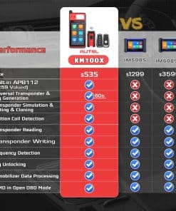 1. 2024 Nuevo Programador Autel KM100 (X), Exactamente Igual a KM100 Autel, como la marca líder mundial en programadores de llaves de coche, el Kit de Generador de Llaves KM100X, el inmovilizador más profesional ha nacido! Sin duda, KM100X debe ser su mejor elección por sus funciones únicas: Generación de llaves universales en 60s Lectura/Clonación/Edición de Ch~ips IMMO completo Auto VIN/Auto Scan 10+ funciones principales, etc. Con la interfaz inalámbrica MaxiVCI V200 y 2PCS de la blank Autel I ~KEY, comienza directamente el aprendizaje de las llaves IMMO después de la generación de llaves.