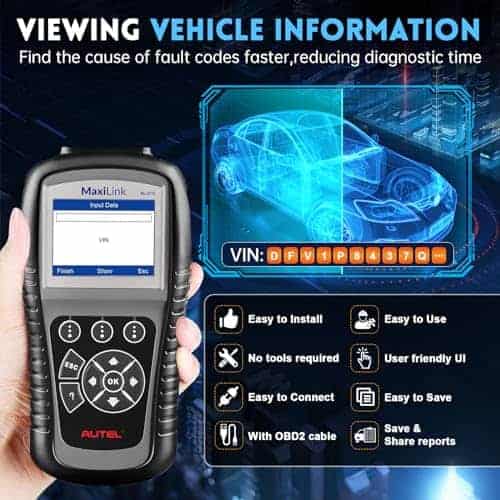 Autel Maxilink ML619 es actualmente el diagnóstico más rentable. El escáner Autel ML619 es la herramienta perfecta para detectar fallos en los sistemas de frenos antibloqueo (ABS) y sistema de bolsas de aire suplementarias (SRS)/Airbag de los vehículos, además de realizar diagnósticos OBD II. Tanto las señales visuales como auditivas mejoran la capacidad de la herramienta para ayudar en la rápida detección de fallos, mientras que los consejos de solución en pantalla aceleran las reparaciones. El escáner Autel ML619 es una herramienta indispensable para los reparadores de automóviles y entusiastas, y un regalo ideal para hombres/esposos. El escáner OBD2 ML619 de Autel es compatible con más de 80 marcas de vehículos estadounidenses, y funciona en la mayoría de los vehículos de 1996 y modelos más nuevos (OBDII y CAN), incluyendo GM, Ford, Chrysler, Volvo, VW, BMW, Mercedes, Toyota, Honda, Nissan, Hyundai, Kia, Subaru, Mitsubishi, Peugeot, Citroen, Fiat, Renault, Land Rover, Jaguar, etc. NOTA: No es compatible universalmente con todos los vehículos. El escáner Autel MaxiLink ML619 tiene actualización gratuita de por vida. Lo que le permite actualizar el software del escáner a través de un ordenador basado en Mac o Windows, para agregar los modelos de vehículos más nuevos y solucionar los posibles errores. Además, cuenta con la función de impresión de datos para imprimir datos diagnósticos registrados por el escáner o informes de pruebas personalizados. Bienvenido a contactarnos y le brindaremos soporte y ayuda.