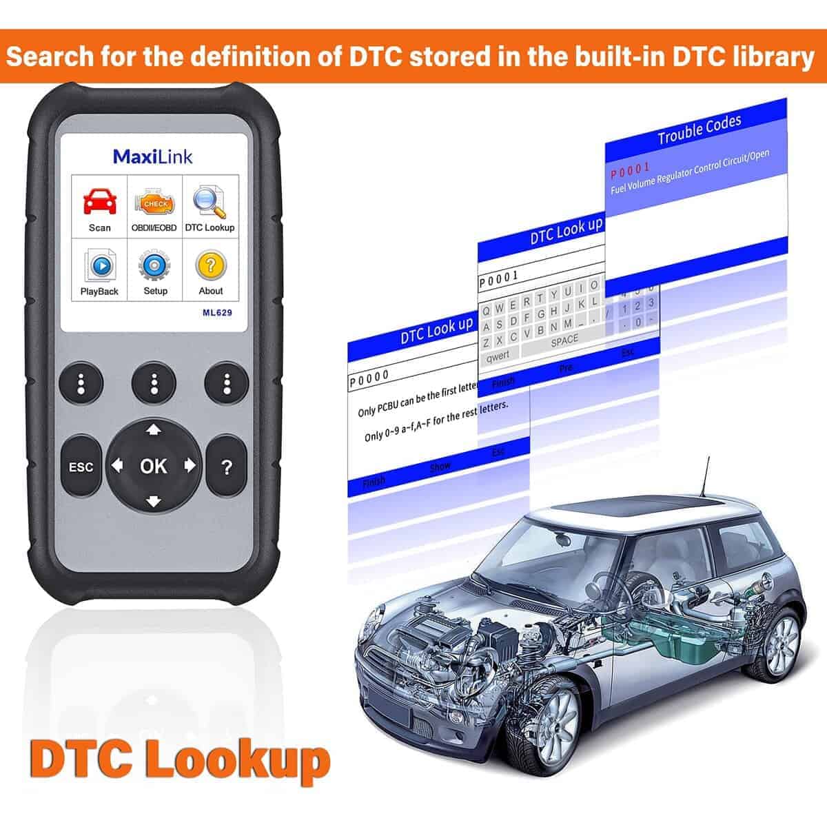 AUTEL MaxiLink ML629 es un escáner OBD2 automotriz avanzado que puede escanear los sistemas ABS, SRS, Motor, Transmisión y OBDII en vehículos de todo el mundo. Puede leer y borrar códigos, y apagar las luces de advertencia MIL, ABS y SRS. Esta herramienta de diagnóstico de automóviles es ideal para entusiastas del bricolaje y mecánicos caseros, ya que puede realizar las 10 pruebas de modos de OBDII, incluyendo leer/borrar códigos, ver datos EOBD en texto o gráfico, fotograma congelado, recuperar estado de preparación de I/M, prueba de monitor de O2 y a bordo, prueba de componente, ver información del vehículo y módulos presentes. También puede señalar el código de falla del sistema del motor para apagar la luz de verificación del motor. El escáner OBDII ML629 está diseñado con una biblioteca de DTC integrada de 7000 definiciones de códigos DTC.