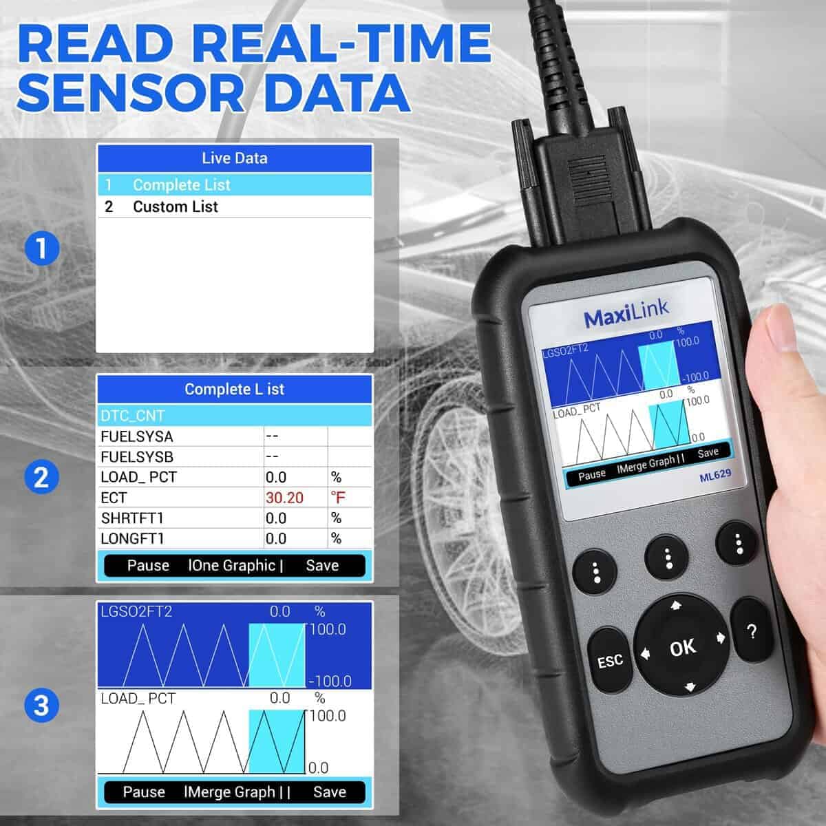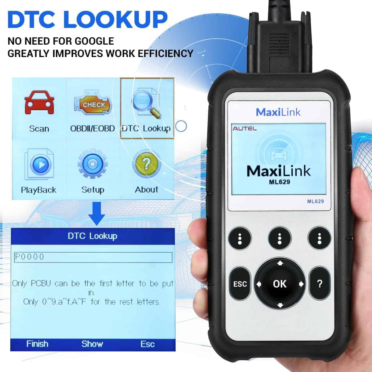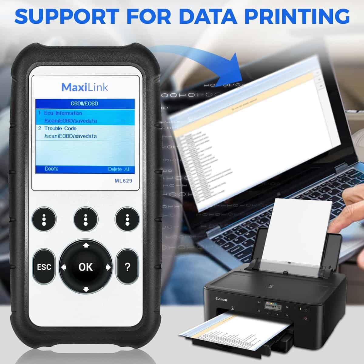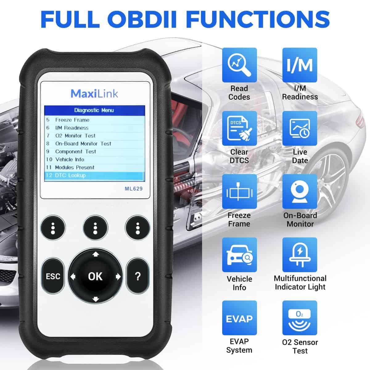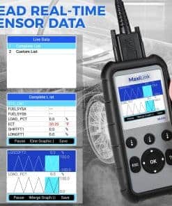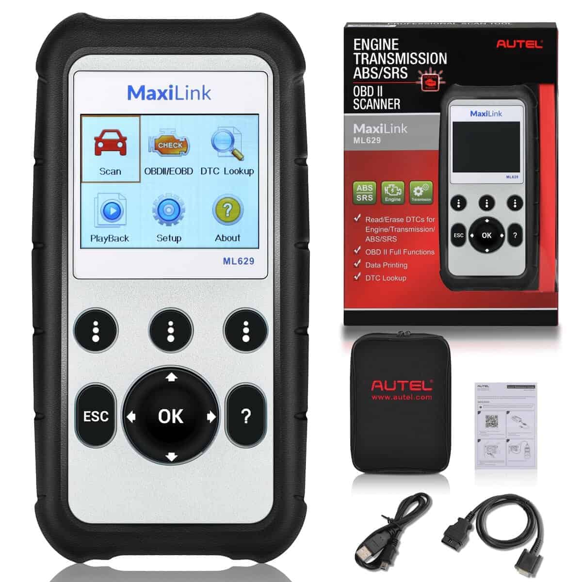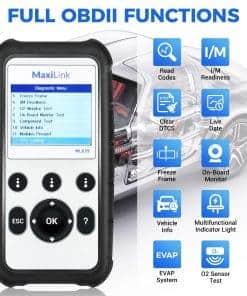 4. La mejor elección para entusiastas del bricolaje y mecánicos caseros: El escáner OBD II ML629 resuelve los problemas de su automóvil, además de la función OBD2, lee los códigos de 4 sistemas del automóvil, también cuenta con datos en tiempo real gráficos 4 en 1, búsqueda DTC y otras funciones útiles. Un producto para resolver los problemas de su automóvil.