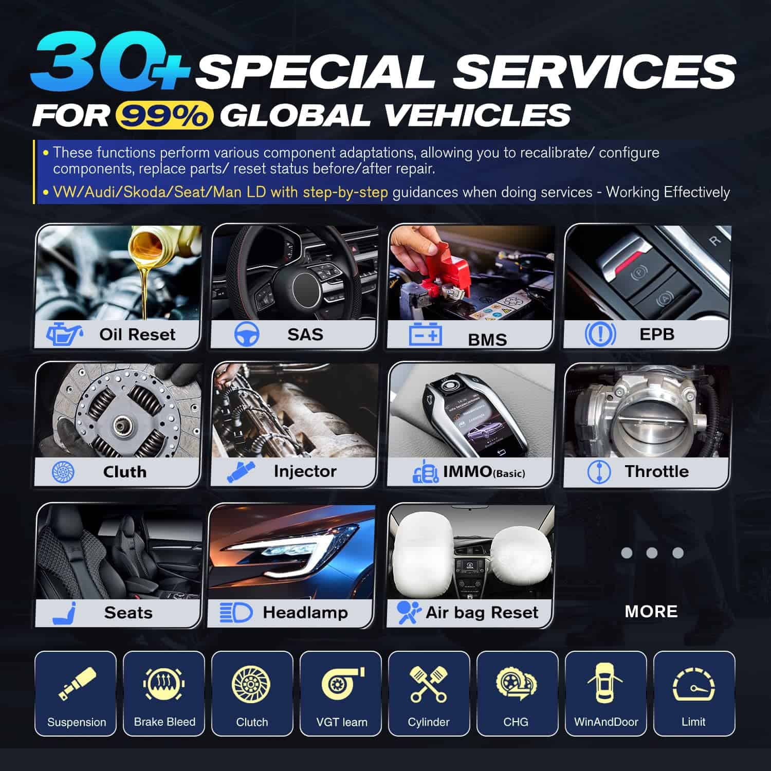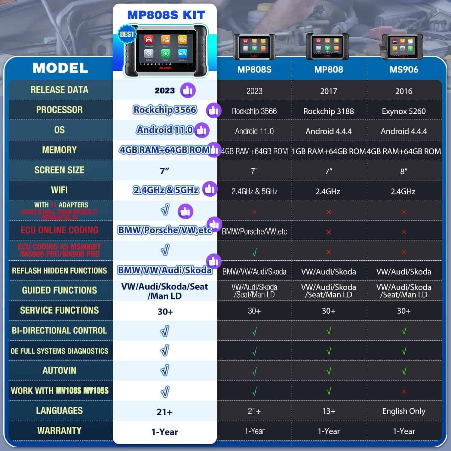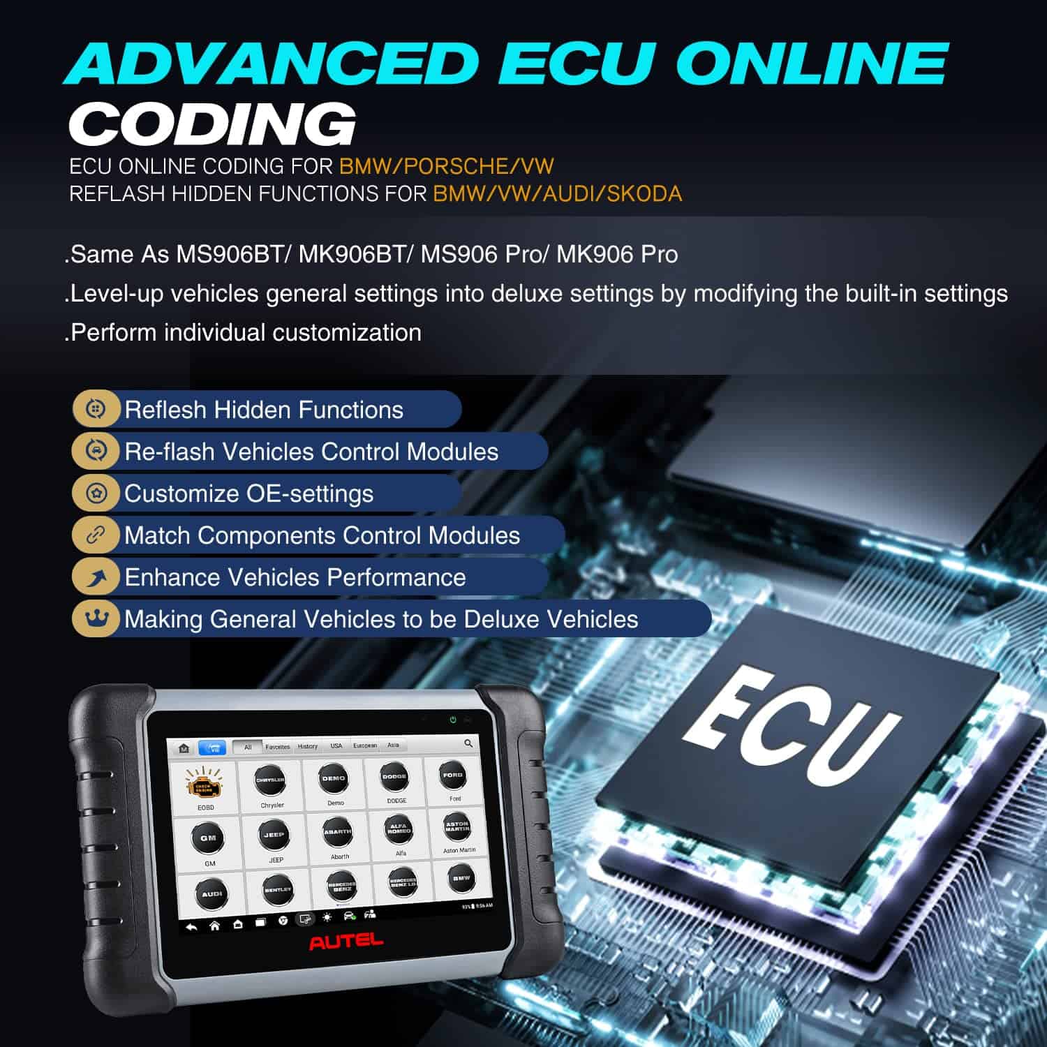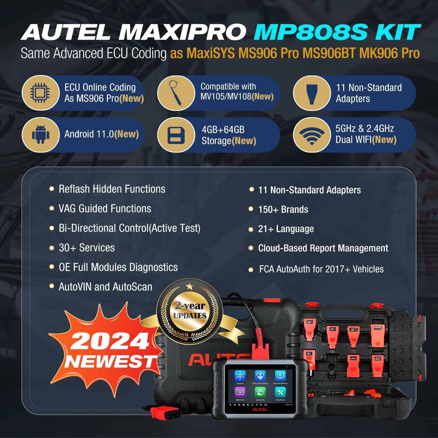 1. 2-Year Updates & 1-Year Warranty Como miembro nuevo de las herramientas de Codificación de ECU Avanzada de Autel en la línea de productos Autel 906 Pro, Autel ofrece 2 años de actualizaciones gratuitas para Autel MP808S KIT. Garantía de 1 año por defecto, dentro de los 7 días posteriores al registro, Autel agregaría una segunda actualización gratuita a sus dispositivos. Garantía de 1 año y soporte técnico basado en Autel-HQ de por vida. 2. 2024 Nueva Versión Actualizada del Escáner de Codificación de ECU, Nueva Versión de Autel MP808K DS808K Como escáner actualizado para talleres, el MP808S KIT actualizado con Codificación de ECU Avanzada igual a la Serie Autel 906 Pro con un presupuesto más bajo. Guías completas VAG Bidireccionales 30+ Servicios OE Diagnóstico de Sistema Completo Autel Cloud Android 11.0 CPU 5 veces más rápido con 11 pcs adaptadores (valorados en 180 dólares) 4G + 64GB 5G/ Soporte WiFi de 2.4GHz Compatible c/ MV108S 21+ Idiomas Sin Restricción de IP AutoAuth para FCA SGW, etc. 3. Codificaciones de ECU Avanzadas y Funciones Ocultas de Reprogramación Como MS906 PRO Autel MP808S KIT equipado con Codificación Avanzada de ECU en línea para BMW/Porsche/VW, etc. y Funciones Ocultas de Reprogramación para BMW/VW/Audi/Skoda, etc. La cobertura de codificación y la precisión de los modelos de gama alta están muy por delante de los competidores de otras marcas. Por ejemplo: la codificación en línea de Volkswagen, parametrización en línea, emparejamiento en línea y volumen de datos de calibración y calibración y el soporte para modelos ocultos horizontales y el número de funciones están todos por delante de los competidores. 4. 30+ Servicios Especiales Mejorados para Talleres y Mecánicos – 10%+ por Delante de los Competidores Autel MP808S KIT soporta funciones especiales de sistemas completos, como Aprendizaje del CKP, Codificación de Inyectores, Reinicio de Aceite, EPB, SAS, BMS, Sangrado de ABS, Reinicio del Acelerador, Suspensión Neumática, etc. y la cobertura está 10%+ por delante de los competidores y sigue aumentando. Por ejemplo: Para Toyota, admite ampliamente 241 funciones especiales como registro de ID/registro de número de neumáticos, registro de código de llave, etc., y la cobertura supera con creces la de los competidores. 5. Prueba Activa Bidireccional Completa – Diagnóstico Profundo 2024 El escáner de talleres MP808S KIT no solo lee/borra códigos de sistema completos, sino que también profundiza en el diagnóstico. Puede realizar una prueba activa real que puede enviar comandos al ECU de los vehículos para hacer funcionar los actuadores y realizar pruebas de actuadores, como el sangrado de ABS, subida/bajada de ventanas, encendido/apagado, etc., ayudando a los técnicos a encontrar rápidamente las fallas y ubicar problemas. Funciones no universales. Por favor, envíe el VIN (17 dígitos) a auteldirect @ outlook. com para verificar. 6. Guías de Servicios VAG Paso a Paso – Sin Preocupaciones para los Mecánicos Esta característica está diseñada principalmente para coches VAG ampliamente poseídos pero complicados. Como la versión de hardware liviana de Autel MaxiSYS MS906 Pro/ MaxiCOM MK906 Pro, MaxiPRO MP808S KIT se destaca con guías de operación de servicios especiales paso a paso (para VW, Audi, Skoda, Seat, Man LD). Una función muy útil para nuevos técnicos y para prevenir situaciones embarazosas cuando lidian con varios coches VAG ampliamente poseídos y ahorrarles mucho tiempo. 7. Diagnóstico de Sistema Completo de Nivel OE – Realice un Chequeo Completo El escáner de talleres profesional Autel MP808S KIT puede acceder rápidamente al ECU de los vehículos para hacer escaneos completos a través del cable OBD2 incluido e identificar autos por AutoVIN o Ingresar Manualmente. Realiza diagnósticos de nivel OE, lee información del ECU, lee/borra DTCs, ve todos los datos en vivo de todos los sensores en 4 formatos (texto/gráfico de onda/histograma/diagrama de metro), realiza pruebas activas y Codificación Avanzada de ECU avanzada y proporciona los datos de diagnóstico necesarios. Domina la situación de los autos con unos pocos clics simples. 8. Administración de Informes en la Nube ¡Esta es una función útil de intercambio de datos! Con ella, puede cargar informes de diagnóstico a la nube de Autel y compartir informes al instante con sus clientes a través de código QR/mensaje de texto/correo electrónico fácilmente, ¡no limitado a través de correo electrónico! Pueden ver los informes en cualquier momento. Al igual que cualquier otro espacio en la nube, es un jardín trasero para sus informes de diagnóstico que le ayudará a mejorar la centralización de datos, compartir de manera simple y rápida, reducir la carga de memoria y mejorar la eficiencia en el trabajo.