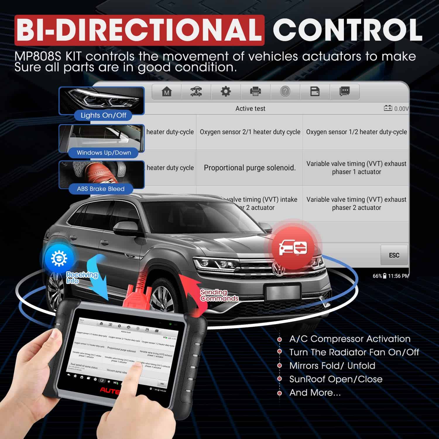 Autel MP808K es una herramienta de escaneo de diagnóstico profesional que puede realizar un diagnóstico de nivel OE en todos los módulos disponibles de vehículos, programación de llaves, pruebas activas y funciones completas de reinicio y servicio como purga de frenos ABS, reinicio de aceite, calibración SAS, reinicio de pastillas de freno de estacionamiento después de reemplazo, regeneración de DPF, codificación de inyectores, adaptación de transmisión, adaptación del acelerador, etc. Con capacidades completas para códigos, datos en vivo, pruebas activas, información del ECU, adaptación, emparejamiento, etc, el escáner de diagnóstico automotriz MP808K es una excelente elección de escáner de diagnóstico para técnicos y mecánicos en casa. br br b Alternativa Rentable para MS906, la Mejor Opción de Actualización para DS808 MP808 /b br Autel MP808K ofrece la mejor combinación de diagnóstico de todos los módulos a nivel OE, funciones completas de reinicio y servicio, cobertura de vehículos inigualable y una excelente relación calidad-precio. Teniendo básicamente las mismas funciones que MS906, Autel MP808K se convierte en una alternativa rentable perfecta para la herramienta de escaneo Autel MS906. Ofreciendo una cobertura de vehículos más amplia que DS808 y MP808, el escáner de diagnóstico automotriz MP808K es una excelente opción para actualizar sus herramientas de diagnóstico de vehículos. br br b Diagnóstico de Nivel OE en Todos los Sistemas de Automóviles /b br La herramienta de diagnóstico de automóviles MP808K puede realizar un diagnóstico de nivel OE en todos los sistemas electrónicos de automóviles como ABS, SRS, Motor, Transmisión, Sistema de frenos, etc que solo puede encontrar en las herramientas de escaneo más sofisticadas. Cubre todos los módulos de vehículos disponibles, incluidos pero no limitados a PCM, ECM, EPS, PDM, TPM, BCM, ABS, SCCM y etc. Con capacidades completas para códigos, datos en vivo, pruebas activas, información del ECU, adaptación, emparejamiento y etc, la herramienta de escaneo de diagnóstico automotriz MP808K es una herramienta de diagnóstico y servicio profesional para técnicos y mecánicos en casa.