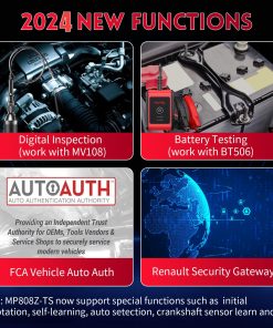 Autel MaxiPRO MP808Z-TS es un modelo legendario que presenta codificación de ECU, Prueba Activa de TPMS Completa, 31+ servicios, funciones especiales FCA Auto Auth Battery Test (con BT506) y más. Equipado con funciones de codificación de ECU avanzadas iguales a MS906BT, funciones de programación TPMS completas iguales a TS608, y más. Ofrece diagnóstico de todos los sistemas, control bidireccional, pruebas activas y más. Compatible con pruebas de batería y análisis digital.