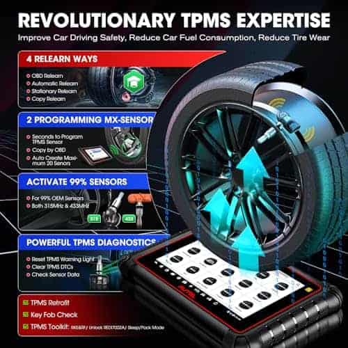 3. EXPERTO EN TPMS COMPLETO, SUPERIOR AL ESCÁNER OE Igual que MS906 PRO-TS Nivel de Mejora de MS906TS MP808S-TS, Autel MaxiPRO MP900-TS viene con TPMS Completo: Programación de 60s y Clonación de Sensores MX 99% Sensores 315 y 433MHz Activación de Sensores 3000+ Procedimiento de Reinicio Modificación y Adaptación TPMS Comprobación de OEM Part NO. Comprobación de Presión de Neumáticos, Frecuencia del Sensor, Temperatura, ID del Sensor, Ubicación del Sensor, Estado de la Batería Recuperar Datos Apagar Luz de TPMS, etc. El Kit de Herramientas ofrece RKE & RF, Desbloquear 7002A ROJO, Modo de Reposo/Estacionamiento.