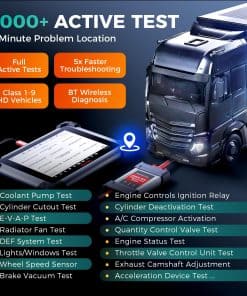 4. 3000+ Pruebas Bidireccionales Completas La herramienta de diagnóstico de vehículos comerciales Autel CV MS908CV II tiene la capacidad de control bidireccional total sobre varios sistemas/componentes del vehículo comercial, y puede ordenar a los componentes que realicen pruebas específicas para identificar fallos de la forma más rápida. Puede realizar pruebas como la Prueba E-V-P, Prueba de Cilindro, Prueba de Compresión de Cilindro, Prueba de Ventana/Puerta/Techo, Encendido y apagado de la bomba de combustible, ciclismo del embrague del acondicionador de aire y más.