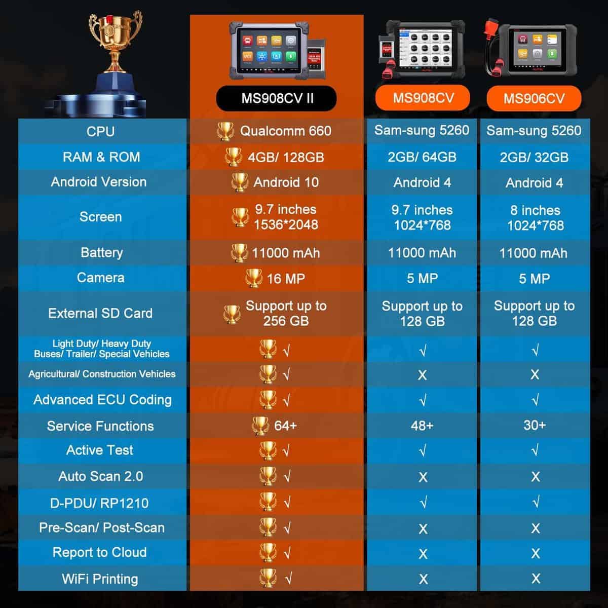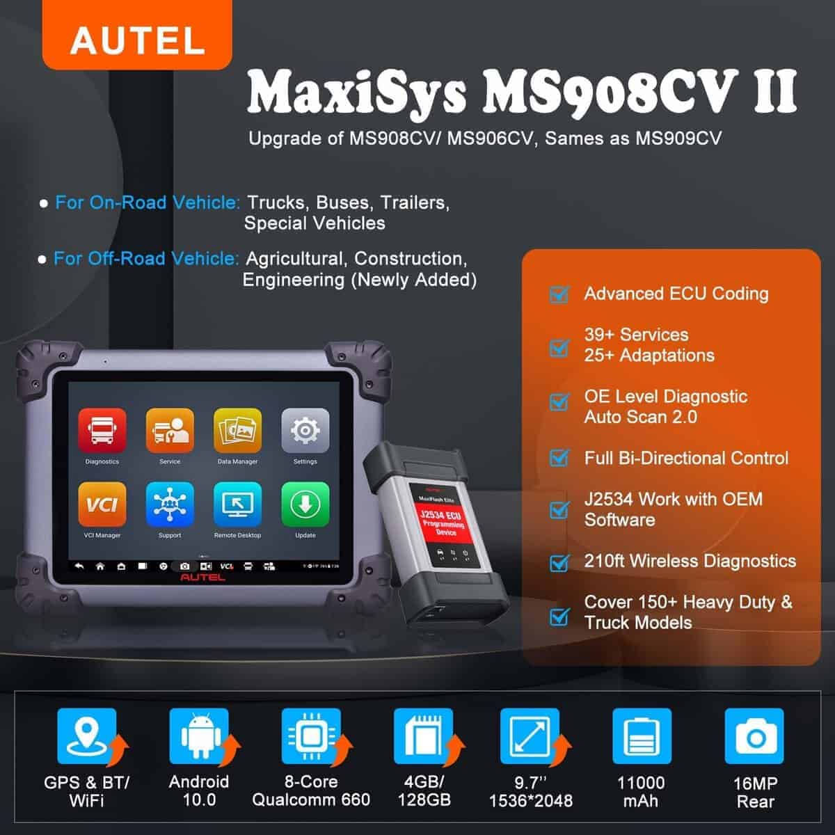 7. Más Autel MS908CV II ofrece más funciones: FCA Renault SGW, Escaneo Pre/Post, GPS, Impresión WiFi, Auto Scan 2.0, Informe en la Nube, Videoscopio, etc. Herramienta de diagnóstico de diésel Bluetooth CV 100% Autel Original y Vendedor Certificado Autel Top.