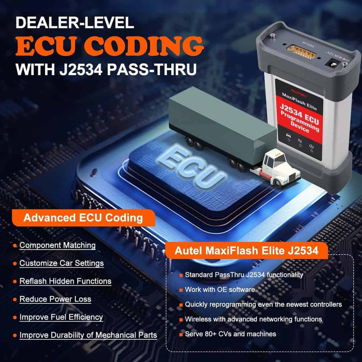 2. Codificación de ECU y Programador J2534 Igual que MS908S/ MK908 II/ MS909CV, el MS908CV II ofrece una codificación avanzada de ECU. Puede recuperar y reflashear la información de los módulos de control, reparar procesos de codificación fallidos, solucionar problemas de conducción y eficiencia de combustible, reducir la pérdida de potencia, mejorar la durabilidad de las partes mecánicas, etc. Con un programador J2534 (valorado en 1000US D), es compatible con los protocolos SAE J2534-1 y -2/ D-PDU/RP1210 y admite actualizaciones de software de fábrica OE. Por favor, verifique la compatibilidad del vehículo antes de comprar.