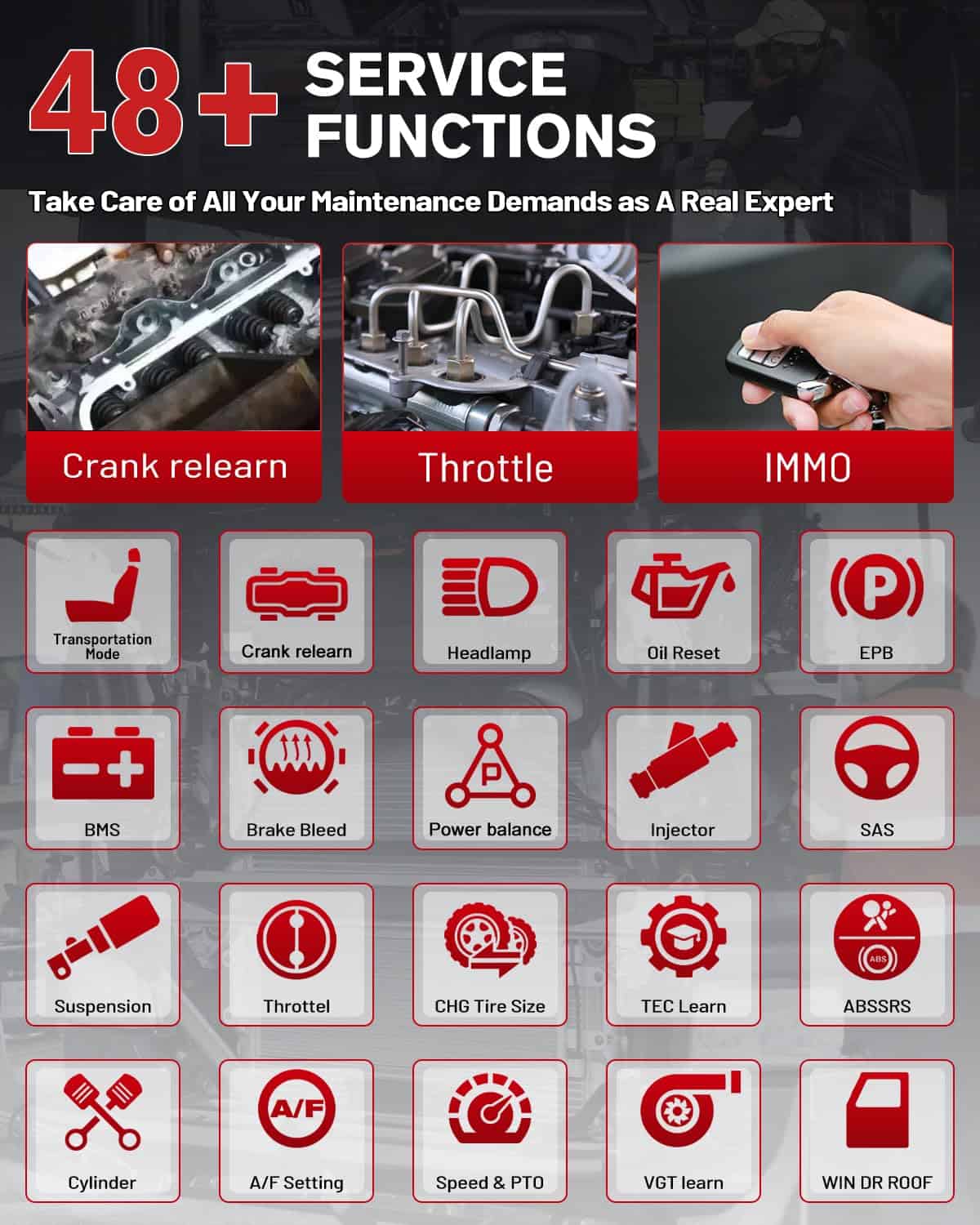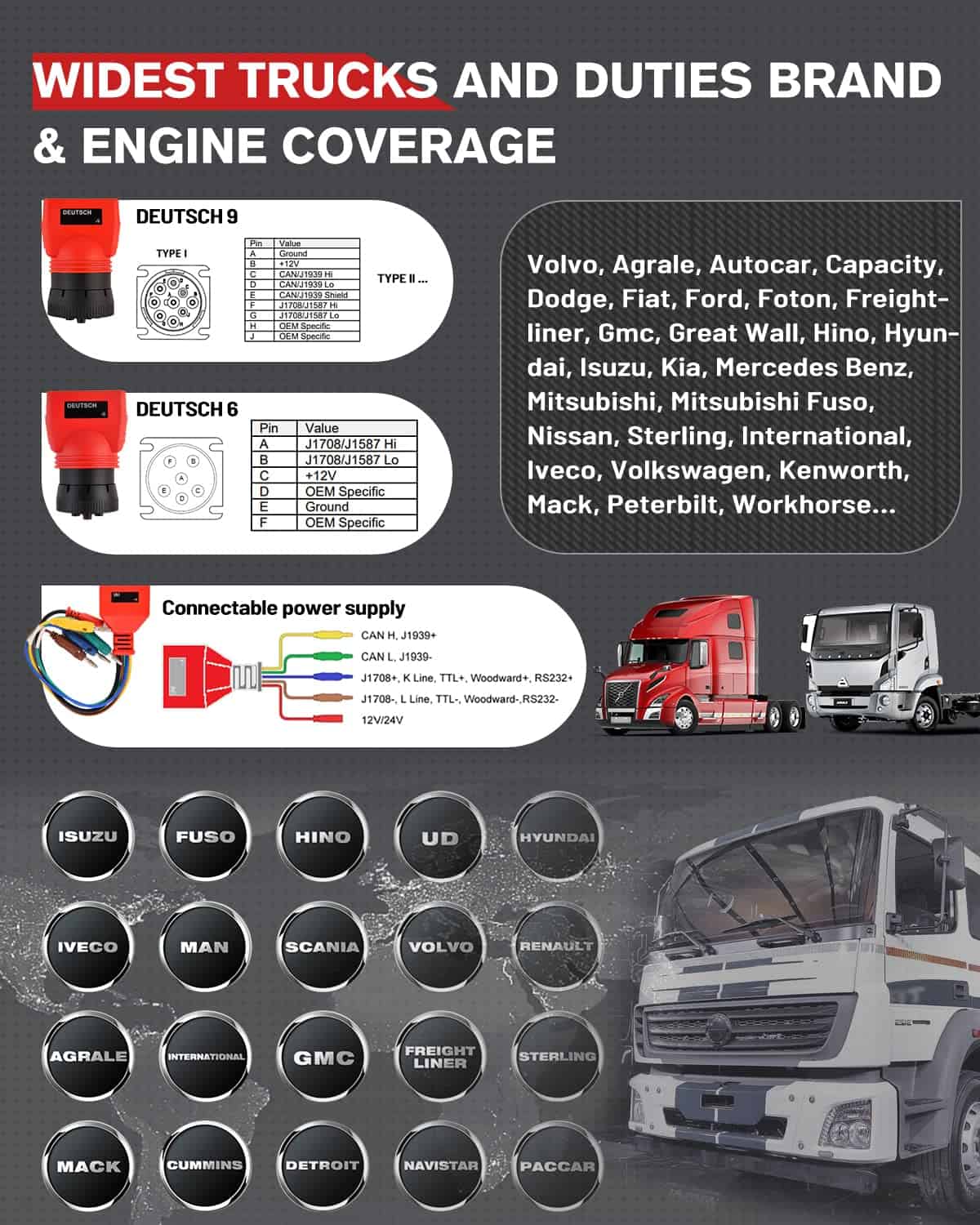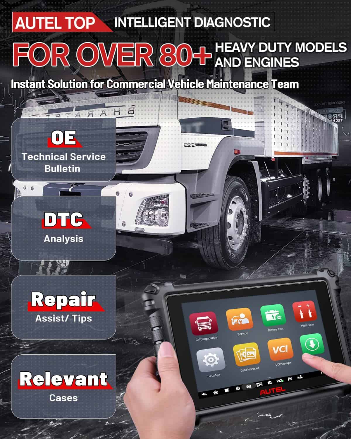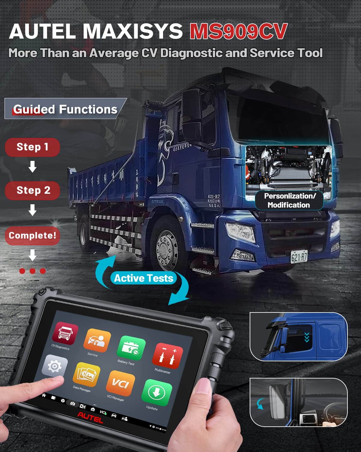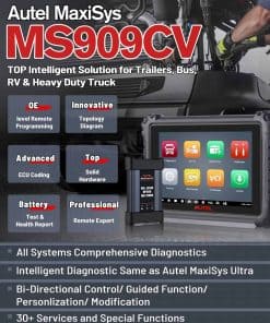 Como el primer escáner de camiones pesados de diagnóstico inteligente en la industria, Autel MaxiSys MS909CV encuentra fallas y le proporciona la resolución más eficiente. El escáner Autel MS909CV está construido con Boletines de Servicio Técnico OE, Análisis de DTC, Asistencia en Reparaciones, Consejos de Reparación y Casos Relevantes, todos con instrucciones paso a paso, haciendo que su diagnóstico funcione de manera más inteligente que nunca. Además del diagnóstico inteligente, otra mejora notable en el MS909CV es el diagrama de Topología 2.0 de CAN BUS Tree, diseñado especialmente para las herramientas de diagnóstico OEM, que muestra todas las unidades de control disponibles del vehículo de prueba en diferentes colores, ayudando a los usuarios a conocer el número de sistemas, el número de cada DTC del sistema y la relación de los sistemas de un vistazo, acelerando la resolución de problemas para fallas en el circuito de la ECU. Con el programador J2534, el escáner Autel CV MS909CV tiene funciones avanzadas de programación y codificación ECU a nivel de OE, que pueden actualizar el sistema a bordo del vehículo a la versión más reciente, escribir datos adaptativos para ciertos componentes después de la reparación, y resolver problemas como: capacidad de conducción, eficiencia de combustible, pérdida de potencia, mejorar la durabilidad de las piezas mecánicas, etc. Las funciones de programación y codificación de la ECU de Autel MS909CV varían según el automóvil, consulte la compatibilidad antes de la compra. El escáner de diagnóstico Autel MS909CV puede realizar 30+ servicios como restablecimiento de aceite, aprendizaje VGT, codificación de inyectores, acelerador, cilindro, Adaptación de Transmisión, etc., y 23 funciones de adaptación como Calibración de la presión de turbo, Calibración de sensor de dirección, Calibración de tiempo, Sensor de posición del acelerador de monitoreo, Adaptación de presión de combustible, etc. Los servicios no son universales, por favor verificar la compatibilidad. El escáner de vehículos comerciales Autel MS909CV tiene capacidad de control bidireccional sobre varios sistemas y componentes del automóvil y puede ordenar al módulo de la ECU o al componente que realice pruebas específicas para señalar fallas, como subir / bajar un ventana, encender y apagar la bomba de combustible, activar y desactivar el embrague del aire acondicionado, etc. Autel CV MS909CV es la mejor inversión para talleres de reparación y mantenimiento de grandes camiones pesados. Diferente de los vehículos de pasajeros, los vehículos comerciales tienen aplicaciones diversas, especialmente la alta personalización de los sistemas de energía. Según esta característica, Autel MaxiSys MS909CV proporciona dos menús de navegación por marca de vehículo y por sistema de motor. MS909CV también es compatible con el escaneo de VIN y placas, varios métodos le ayudan a comenzar a trabajar sin esfuerzo y mantener los sistemas del vehículo desde diferentes ángulos. La herramienta de diagnóstico CV Autel Maxisys MS909CV puede trabajar en más de 80 marcas de vehículos comerciales y motores de vehículos pesados, ligeros, camiones, vehículos de gas, vehículos de construcción, autobuses, etc. para diagnósticos y servicios completos. Autel MaxiSys MS909CV tiene garantía de 1 año y actualizaciones de software GRATIS por 1 año.