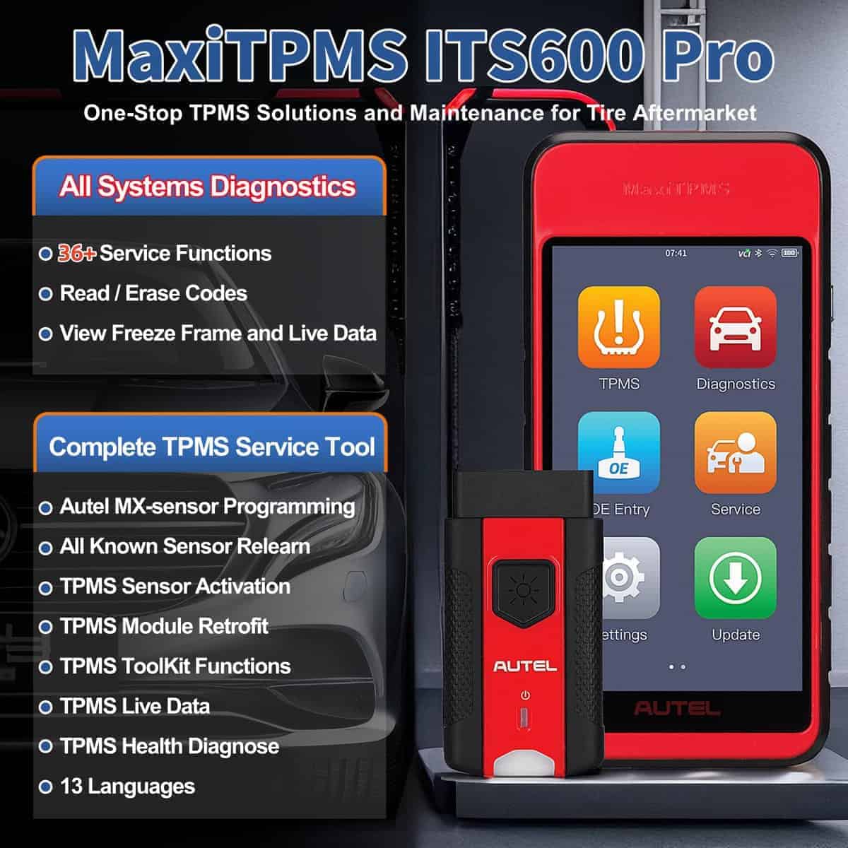 1. 2025 Última Herramienta Autel ITS600 Pro para Programación de TPMS: Android 7.0 OS, tamaño práctico de 5.5 pulgadas, procesador Quad-core (1.5 GHz), 2GB de RAM y 64GB de ROM, pantalla LCD de 5.5 pulgadas, batería de 5000 mAh, más pequeño pero más inteligente que el antiguo ITS600/TS601/TS508WF/TS508. Autel ITS600 Pro tiene todas las funciones TPMS completas más Diagnóstico de Todos los Sistemas y 36+ Servicios, cubriendo las demandas más importantes de los mecánicos de casa en el mantenimiento de vehículos.