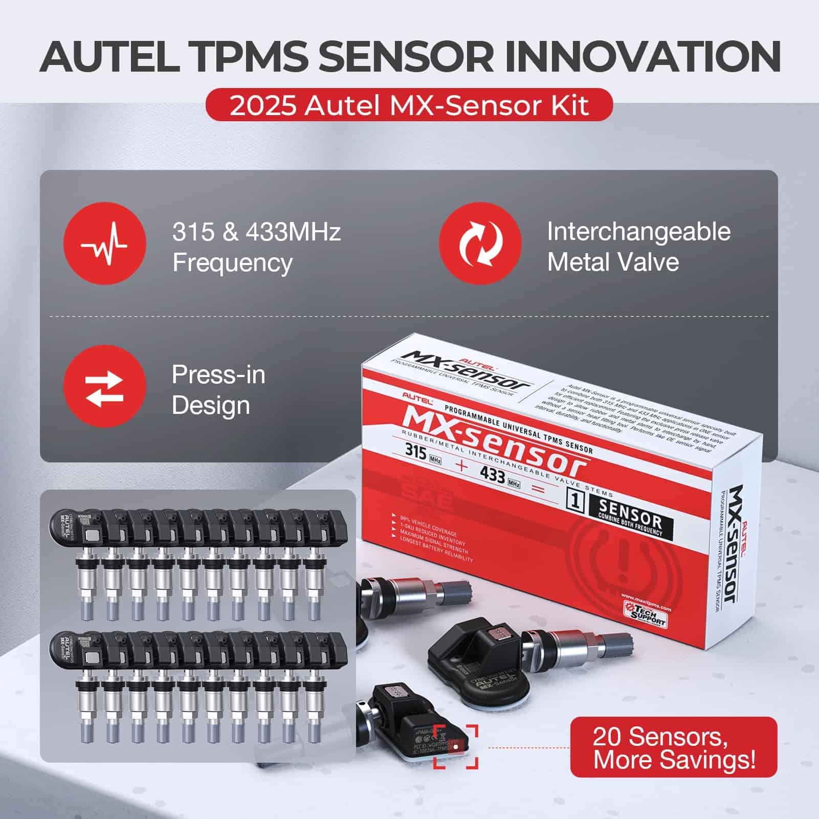 Autel MaxiTPMS MX Sensors 20 PCS: 2025 Paquete de 20