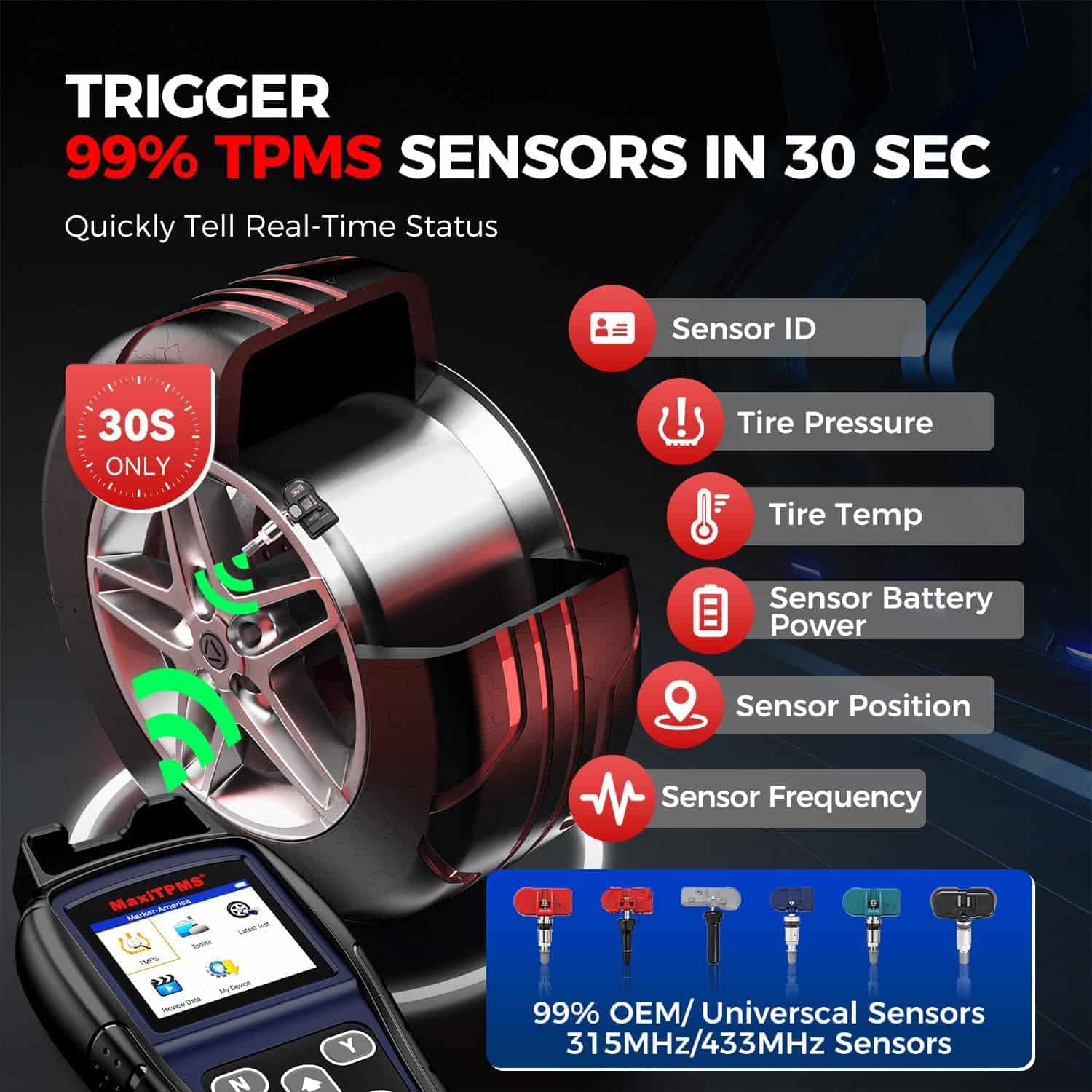 Con TS501 PRO, puede activar el 99% de los sensores TPMS OEM/Universales, diagnosticar los modelos más nuevos y reprogramar las IDs de los sensores con facilidad. Además, esta herramienta proporciona múltiples idiomas y una función de gestión de datos para una mayor conveniencia.