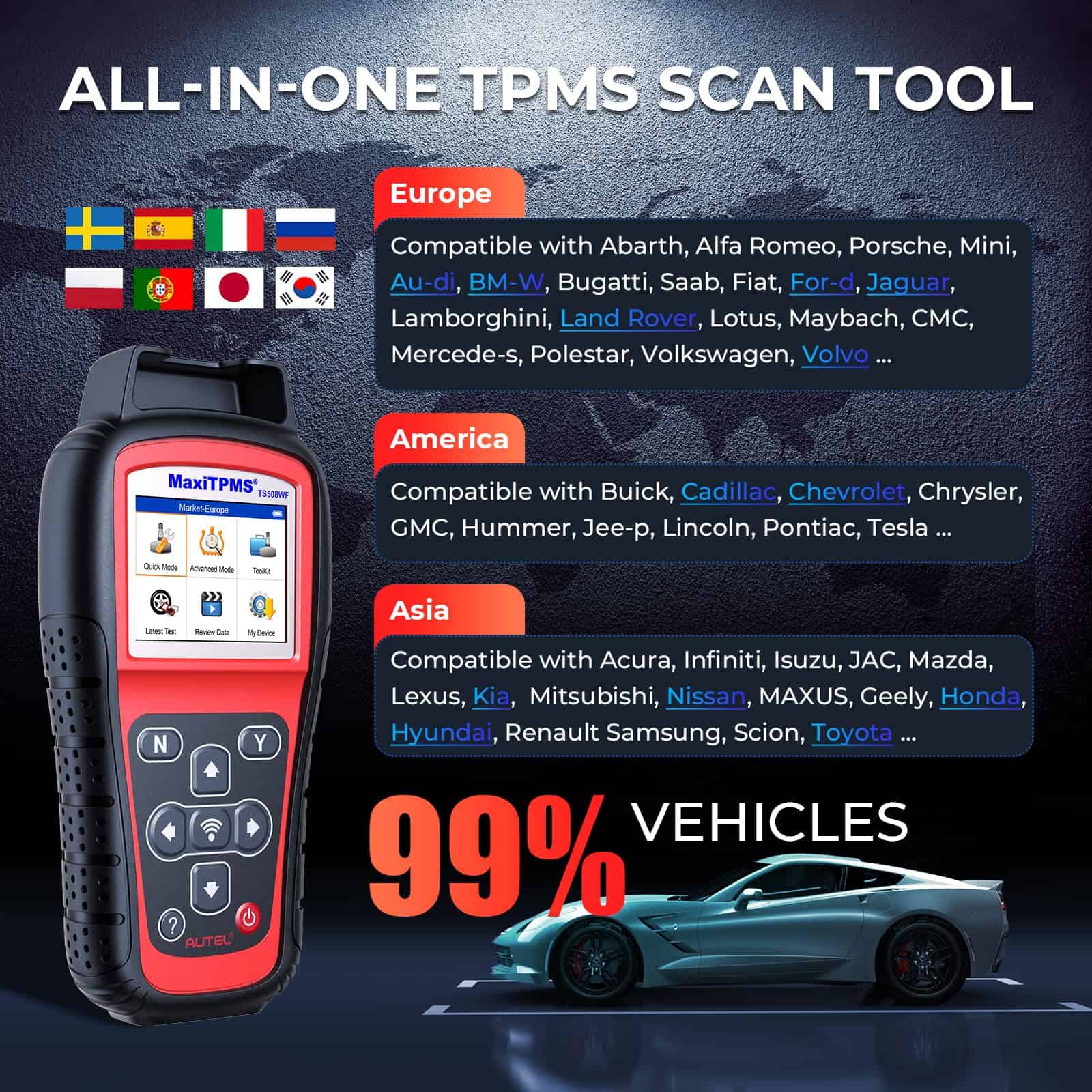 1. Más Potente Que Autel TS508 TS501 Pro TS408S Autel TS508WF es la versión más reciente que presenta opciones de actualización a través de Wi-Fi y USB. Como una versión mejorada de los modelos TS508, TS501 Pro, TS408S, incluye todas las funciones esenciales de TPMS como la programación de TPMS, reprogramación/activación de sensores TPMS, reinicio de TPMS, diagnóstico de la salud del sensor de llantas y la capacidad de leer datos de sensores. La herramienta también agrega Modos Rápidos/Avanzados para reparaciones más rápidas y eficientes de TPMS, así como Selección de Tipo de Llanta/Presión para una mayor precisión.