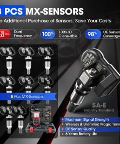 La herramienta TPMS Autel MaxiTPMS TS508WF también incluye 8 sensores MX, ¡dándote más rentabilidad por tu dinero! Significa que el TS508WF es solo de 59 dólares. ¿Por qué sensores MX presionables? Una instalación más fácil al 200%; clonado de ID al 100%; cobertura del 99% de coches con TPMS; doble frecuencia 315/433MHz; máxima intensidad de señal; calificado por SAE J1205/J1206; sin dañar el neumático; dura de 4 a 6 años. Autel TS508WF, sin duda, es una gran inversión que brinda un mayor retorno. Programa hasta 16 sensores MX en casa y de forma inalámbrica. Más opciones: Copia por OBD/Activación/Manual Crear/Auto Crear (1-16). Programa de forma más eficiente 1-16 sensores MX en lotes a la vez de forma inalámbrica. Estabilidad con baja frecuencia para evitar interferencias de otras señales RF. Versatilidad aplicada a varios modelos de coches mientras sigue funcionando como sensores OEM. Sigue la guía de reinicio de 1000+ en la herramienta, con esta herramienta de reinicio TPMS universal puedes reiniciar fácilmente el 99% de los sensores disponibles después de rotar neumáticos, cambiar sensores o reemplazar un módulo TPMS en 3 formas: OBDII, Automático y Estacionario. La guía de reinicio integrada en esta herramienta TPMS cubre casi todos los vehículos OBD2, sin importar si tienen o no un sistema automático de reinicio TPMS. Sigue los pasos específicos para completar tu trabajo. Este programa de activación TPMS puede activar todos los sensores 433/315MHz de todas las marcas. Obtendrás datos precisos de presión de neumáticos, temperatura; ID del sensor, batería, posición, frecuencia, etc. para estimar las condiciones del neumático/sensor. El modo RÁPIDO simplificado puede relear/a… (truncated)