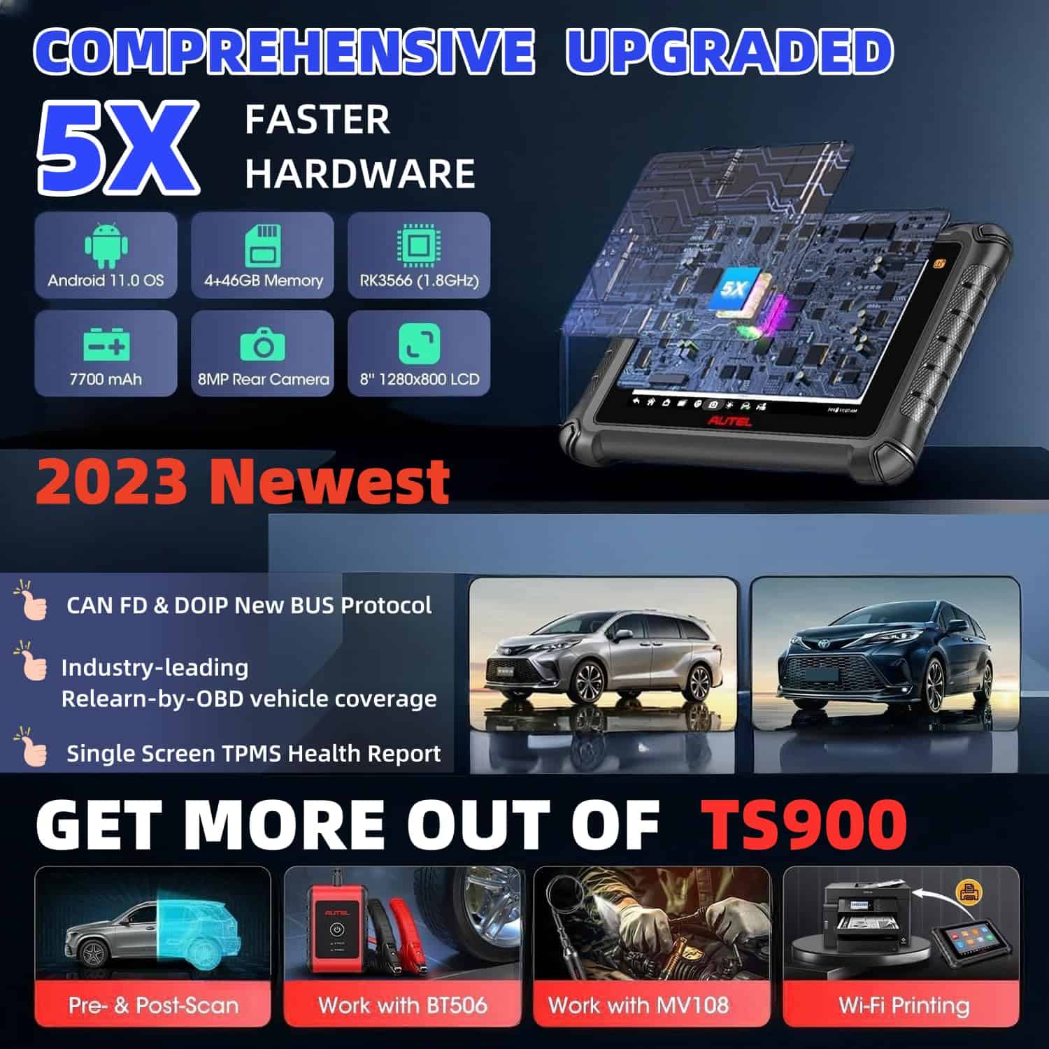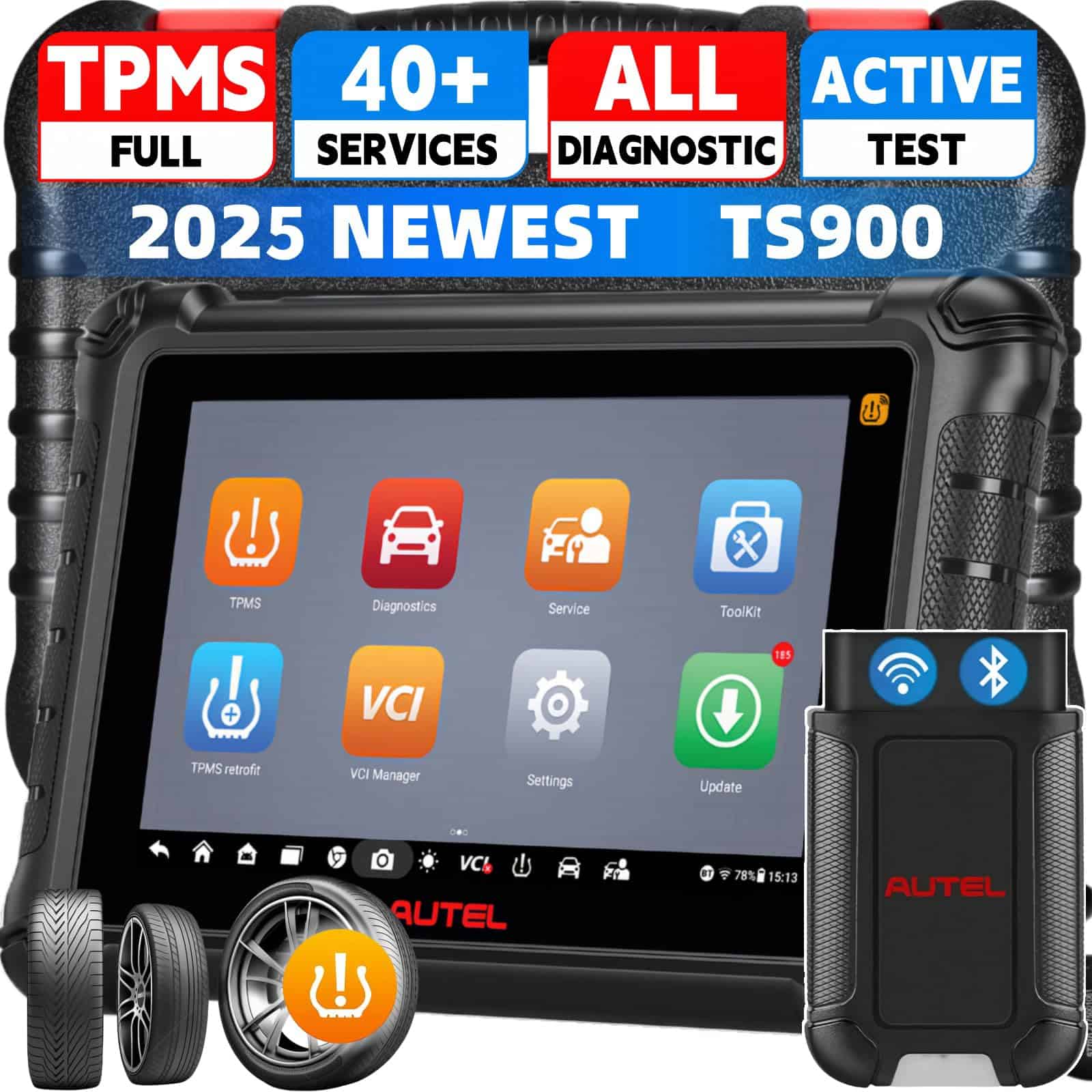1. 2025 Must-Have All-in-One Tool La herramienta Autel TS900 es la actualización definitiva de los modelos TS608/ MX808/ MK808/ MX900. Integra de forma perfecta diagnósticos completos de todos los sistemas, funciones completas de TPMS, control bidireccional, 40+ servicios completos y conectividad Bluetooth. El coste es mucho menor que comprar las herramientas especializadas con estas funciones por separado. Con sus capacidades excepcionales, la Autel TS900 es sin duda la mejor opción para talleres de automóviles profesionales y centros de reparación de neumáticos. y más nuevas funciones: WiFi Print, Pre&Post Scan, TPMS Tetrofit & ToolKit, FCA Renault SGW. Compatible con Sensor TPMS Tesla, Lee 315MHz, 433MHz, 434MHz y 2.4GHz Sensores Bluetooth BLE.