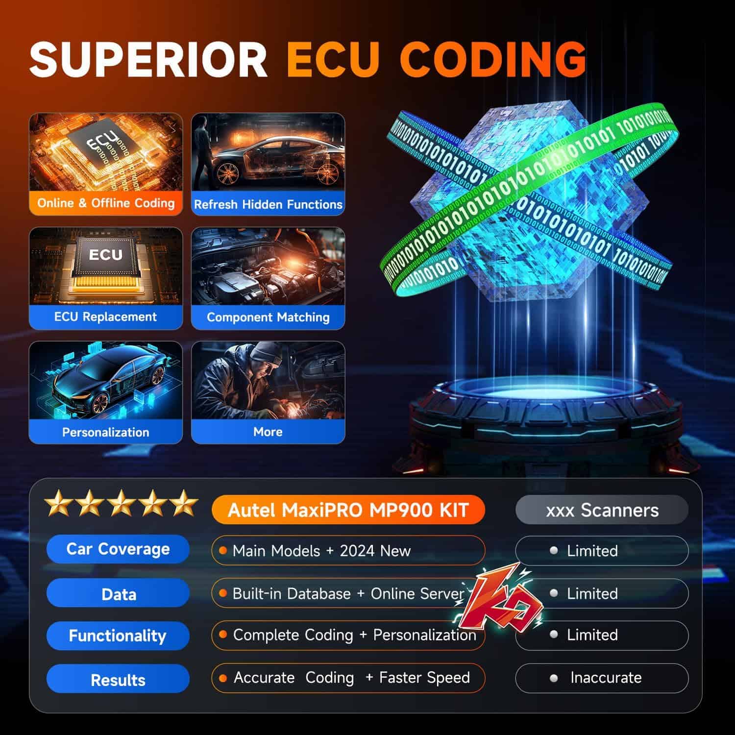 Autel MP900 KIT es un escáner de diagnóstico de nueva generación que cubre todas las funciones avanzadas, como Deeper ECU Coding, 40+ reset services, 3000+ active tests, functions activation, VAG guidance, OE-level all systems diagnostics, FCA AutoAuth & Renault SGW, etc. Con la incorporación de nuevos protocolos DoIP/CAN FD, Auto Scan 2.0, Escaneo VIN/Licencia, Impresión WIFI, Programación de LandRover/Jagua, etc. Siempre actualizado para más funciones y una mayor cobertura de vehículos. Además, incluye un kit de adaptadores OBD1 de 11 piezas con un valor de $200 y un hardware 6 veces más rápido que la mayoría de las herramientas de la serie MP808 & MS906. El MP900 KIT ofrece una codificación de ECU de nivel profesional, 40+ servicios de reinicio, pruebas activas 3,000+, diagnóstico de todos los sistemas y mucho más.¡Potencia tu diagnóstico con Autel MP900 KIT!