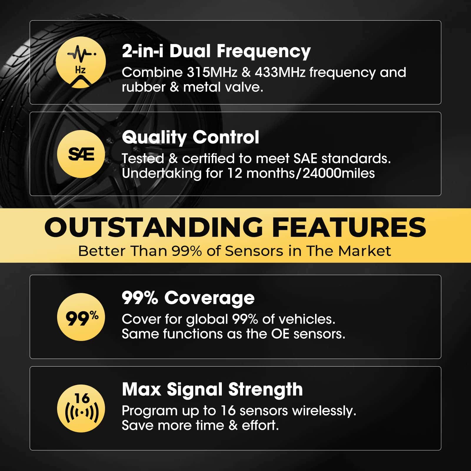Realizar una activación básica del sensor o una programación avanzada del sensor es tan fácil como seguir las opciones del programa y las instrucciones en pantalla. El TS401 proporciona datos del sensor, definiciones de códigos y respuestas visuales / auditivas para que las operaciones sean mucho más fáciles y convenientes de completar. Descargue actualizaciones de software GRATUITAS para funciones de diagnóstico mejoradas y cobertura de vehículos extendida. ¡Ahora incluso su antigua herramienta TPMS puede funcionar como nueva!
