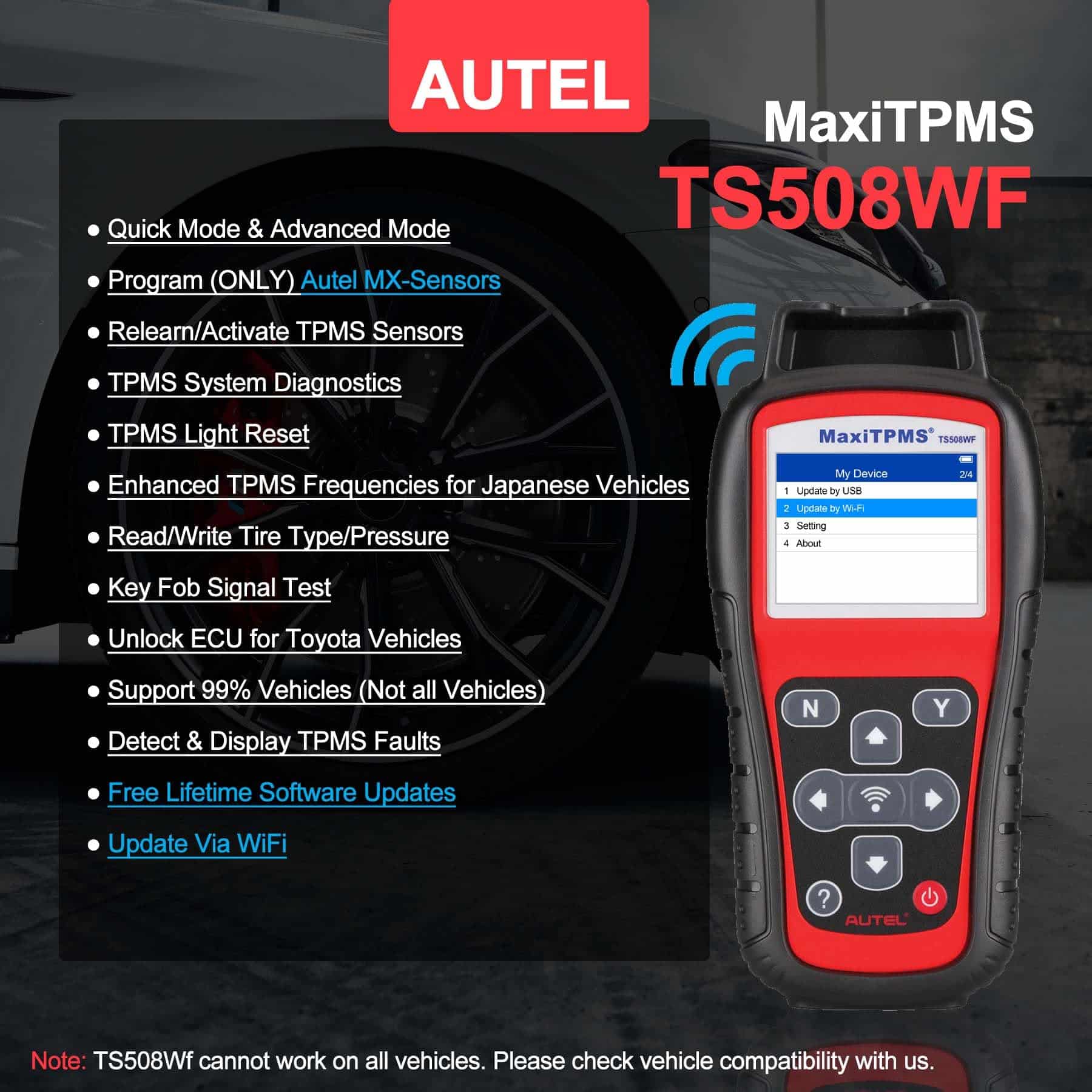 1. TS508WF TPMS Tool Autel MaxiTPMS TS508WF es una nueva herramienta de diagnóstico y servicio TPMS de nueva generación especialmente diseñada para activar todos los sensores TPMS conocidos, leer el estado del sensor TPMS, verificar la condición de salud del sistema TPMS, programar los sensores MX y realizar la reprogramación de TPMS. Con opciones de Modo Rápido y Modo Avanzado, puedes ahorrar tiempo y energía eligiendo la forma más adecuada para completar el trabajo de TPMS. La función de actualización por Wi-Fi facilita la experiencia de actualización. Por favor, contáctenos para cualquier problema que encuentres.