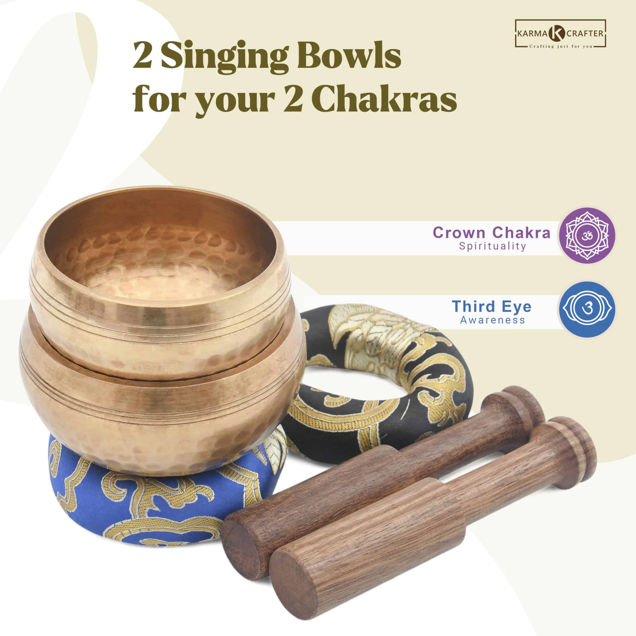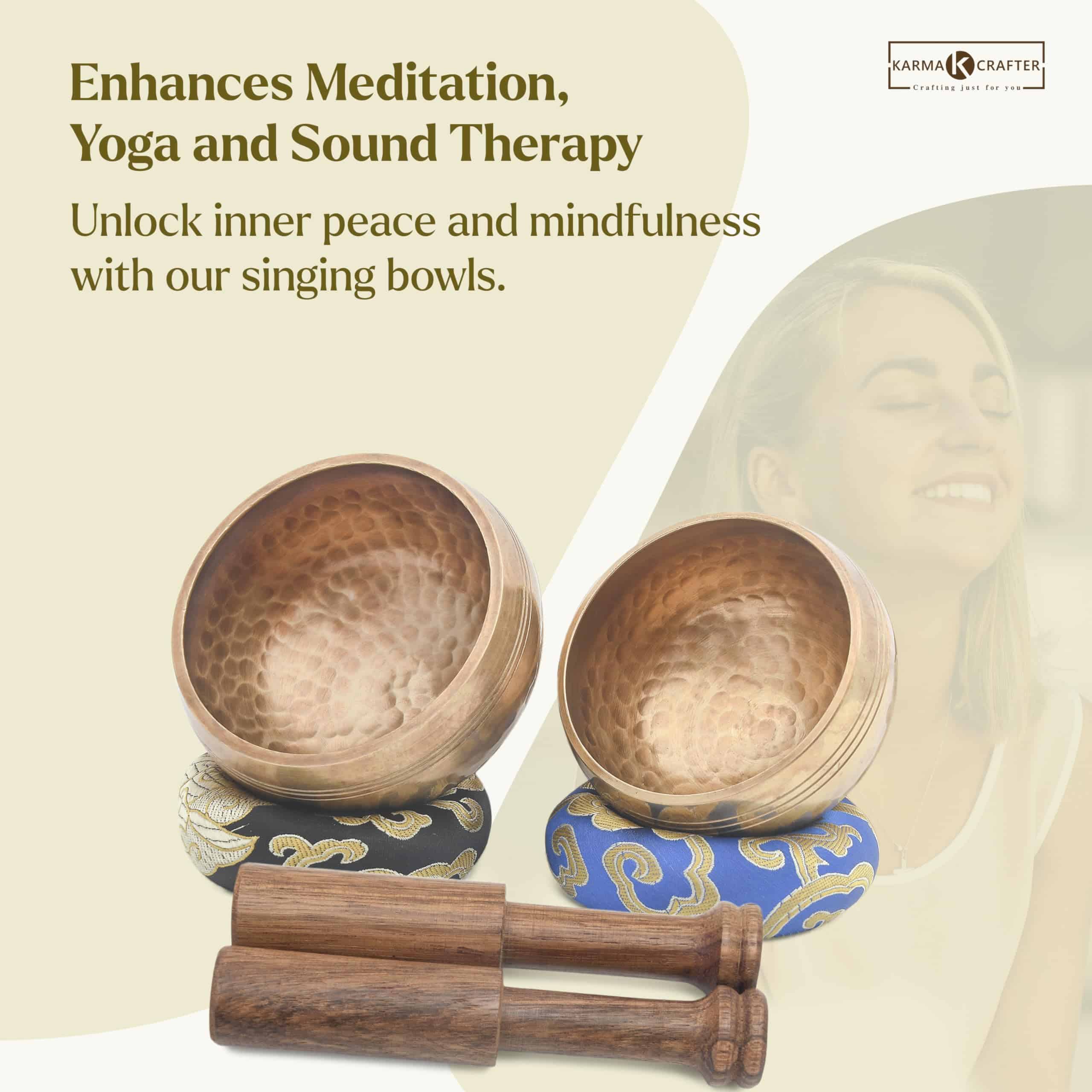 Este set tradicional de Cuencos de Sonido está hecho de 7 metales y también se conocen como Cuenco del Himalaya, campanas de sonido, cuenco de marcar, cuenco tibetano, cuenco de canto y otros. Hecho a mano en Nepal por artesanos locales de comunidades desfavorecidas. Los cuencos de sonido auténticos se pueden usar para diversos fines, como yoga, regalos de meditación, regalos espirituales y también se pueden utilizar para decorar el hogar y el jardín. Son perfectos para cualquier ocasión y son regalos atentos.