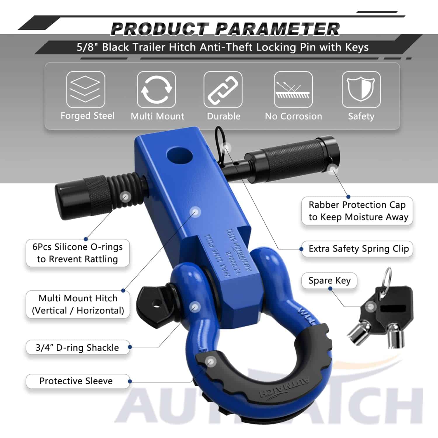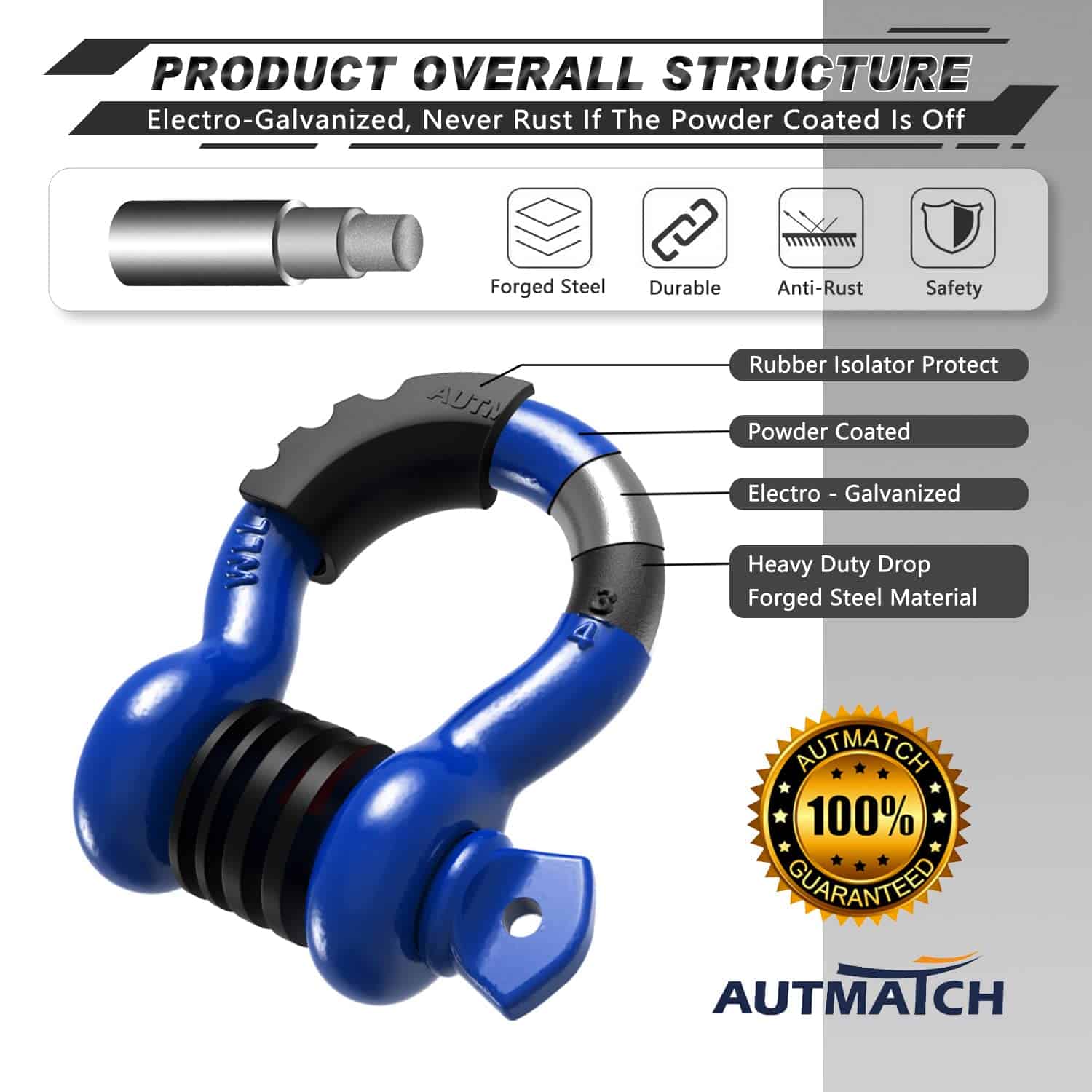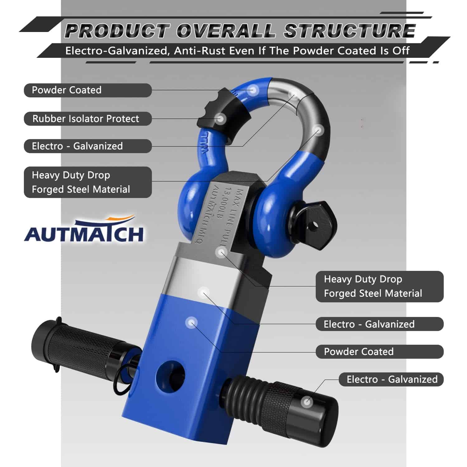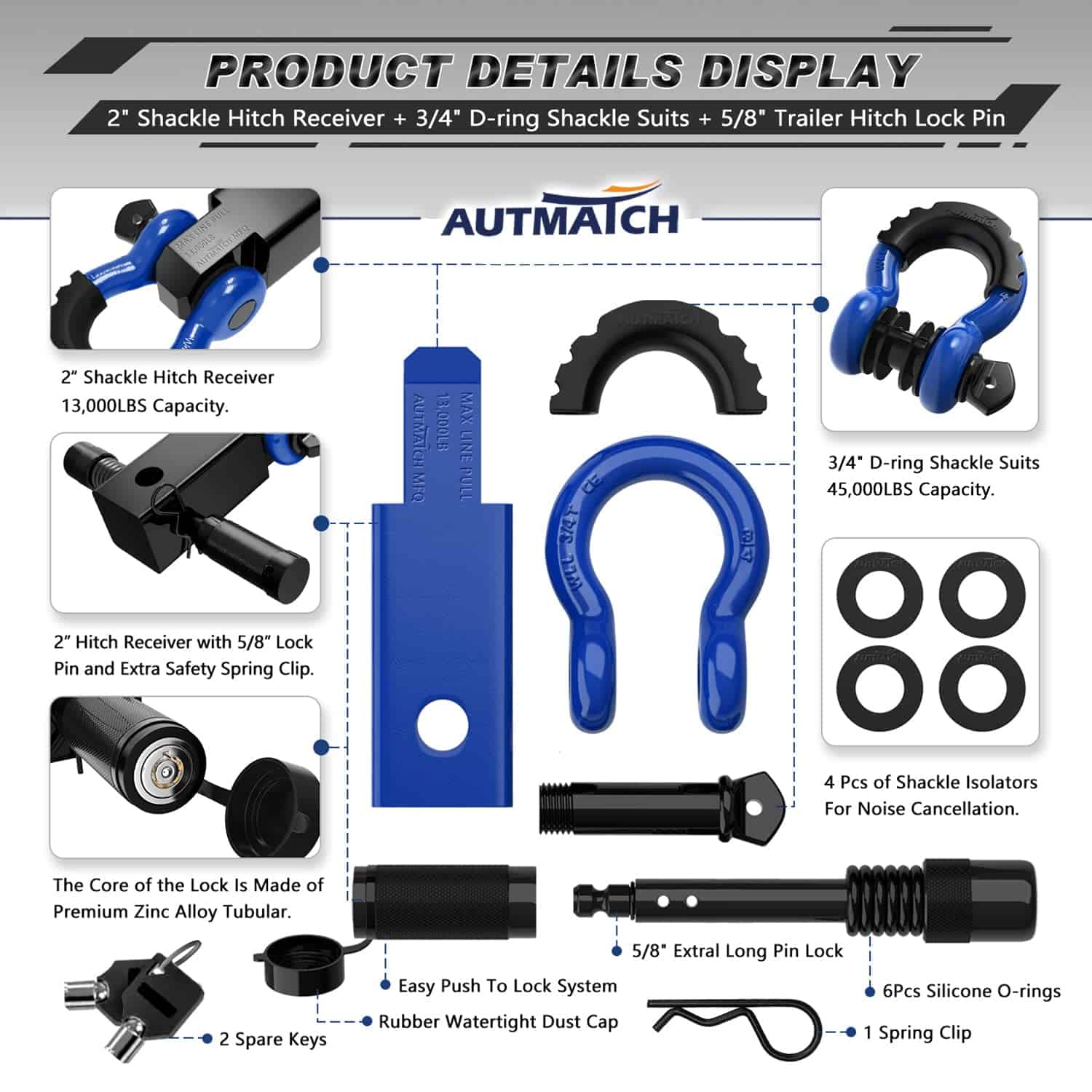 AUTMATCH Set de Ganchos D de 3/4″ y Receptor de Enganche
