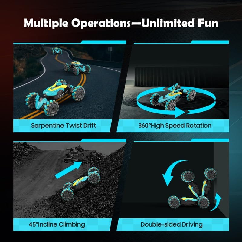 La edad no es límite, y el auto de acrobacias con control remoto es adecuado para niños y niñas de 3 a 15 años.