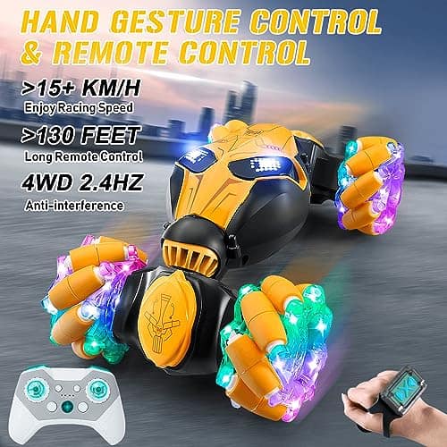 Coche de Control Remoto de Doble Controladores: Nuestro coche de acrobacias viene con un controlador por gestos y un control remoto de 2.4GHz.