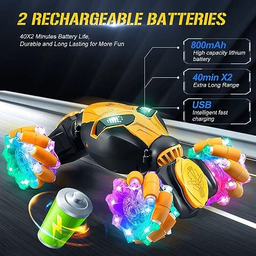 Doble Batería para Diversión Duradera: Incluidas 2 baterías recargables para un increíble coche de control remoto por gestos.