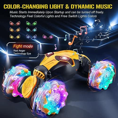 Efectos de Luz y Música Geniales Coche de Control Remoto Controlado a Mano para Niños de 8 a 12 años, rompiendo con las limitaciones de la oscuridad y siendo el coche de control manual más llamativo en la noche.