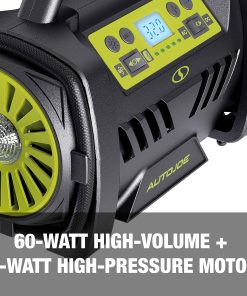 CUANDO EL AIRE ESTÁ BAJO: ¡INFLA Y LISTO CON JOE! Olvídate del viaje a la gasolinera y opta por el Inflador + Desinflador Híbrido de 12V de DC de AUTO JOE. Ligero, potente, compacto y conveniente, está diseñado para su uso en interiores y exteriores para inflar y desinflar rápidamente neumáticos de bicicletas, autos y camiones, colchones de aire, balsas, flotadores de piscina, balones deportivos y mucho más en segundos. Simplemente establece el PSI en la pantalla digital y presiona el botón, AUTO JOE se detiene automáticamente en la presión preestablecida. El inflador híbrido también cuenta con una luz LED incorporada para una mayor seguridad por la noche, y viene equipado con un adaptador cónico, aguja de balón deportivo, adaptador de válvula presta, manguera de inflado de alto volumen con adaptadores de 0.17 y 0.57, para satisfacer todas tus necesidades de inflado y desinflado. Elige el desinflador de alto volumen cuando necesites guardar artículos grandes como cámaras de aire, o compactar rápidamente bolsas de almacenamiento al vacío. Y a diferencia de los modelos voluminosos con menos características, el Inflador + Desinflador Híbrido de 120V de CC/12V de CA de AUTO JOE pesa solo 3.6 libras y se guarda de forma ordenada y fácil en el maletero del auto o en un armario esperando tu próximo proyecto de inflado.