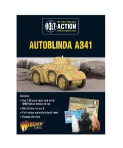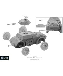 Contiene: 1 Vehículo de resina y metal. Incluye tarjeta de estadísticas de Bolt Action, hoja de calcomanías, marcadores de daño del vehículo. Nota: Modelos suministrados sin montar y sin pintar. Este Autoblinda Ab41 es una réplica detallada de un vehículo blindado italiano de la Segunda Guerra Mundial. Perfecto para coleccionistas y aficionados a la historia militar. ¡Agrega este vehículo a tu colección hoy mismo!