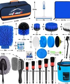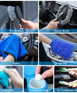 Este completo juego de detallado para automóviles incluye casi todo lo necesario para el lavado, limpieza y detallado completo del automóvil. El trapeador de lavado para automóviles con 4 varillas de aluminio resistentes y cabeza de trapeador giratoria de 180 grados es ideal para limpiar fácilmente áreas de difícil acceso. 4 tamaños diferentes de cepillos eléctricos para taladro y varias almohadillas de pulido para limpiar, encerar y pulir las superficies exteriores e interiores de su automóvil. 5 cepillos para detallado y otros tipos de cepillos cubren todas sus necesidades de limpieza o detallado de su automóvil. Los materiales premium de las herramientas de limpieza para automóviles están hechos de materiales suaves y duraderos que no perderán pelusa ni dejarán marcas en la superficie del automóvil. El guante de lavado impermeable y espacioso ayuda a proteger su mano y reducir el daño a su piel. El cubo plegable de 5 galones puede satisfacer el lavado de autos en cualquier lugar. Los cepillos para neumáticos con cerdas suaves y densas limpian la suciedad sin dañar la superficie. El gel de limpieza para automóviles recolecta fácilmente la suciedad de las hendiduras. Adecuado tanto para la limpieza exterior como interior del automóvil, limpieza de neumáticos de automóviles, pulido y encerado de automóviles, limpieza de la cocina doméstica u oficina, etc. Perfecto para lavar automóviles, motocicletas, camiones, vehículos recreativos o remolques, así como para limpiar ventanas de casa, cristales, espejos y muebles. Este juego de lavado de autos viene con casi todo lo que necesita para lavar y limpiar su automóvil. Puede ser regalado a familiares y amigos en el Día de San Valentín, Navidad y otras ocasiones especiales.