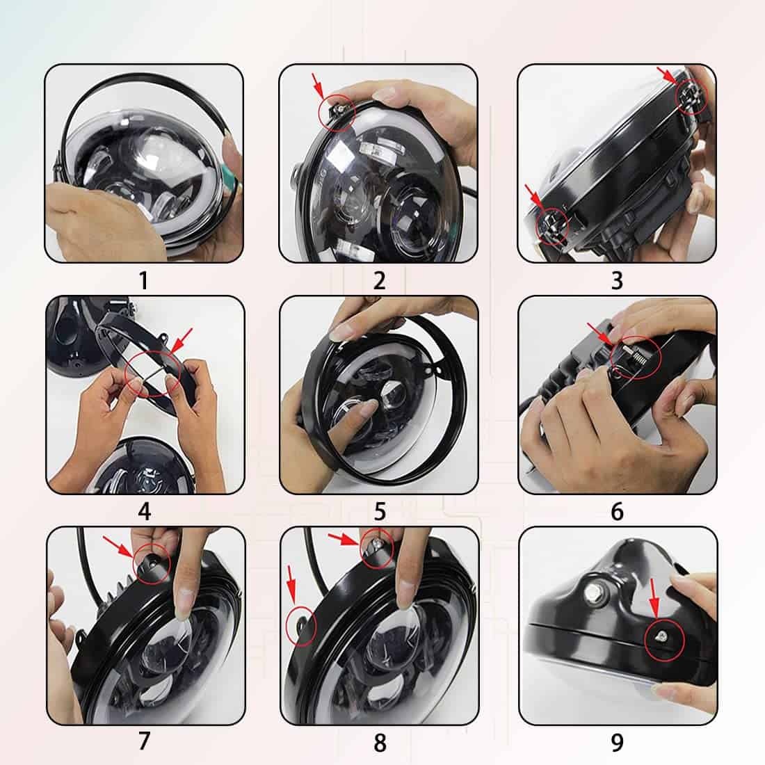 Caja de Faro LED de 7 pulgadas para Motocicleta en Negro con alta calidad de aleación de aluminio, acabado negro satinado, anti-óxido y anti-choque, perfecto para cualquier entorno. Fácil de instalar, no es necesario taladrar agujeros en su motocicleta, puede proteger mejor su motocicleta. Amplia Aplicación: Se ajusta a los modelos FXWG, FXDWG y FXST con faro LED de 7″ de 2004 a 2014 Sportster XL883 XL1200