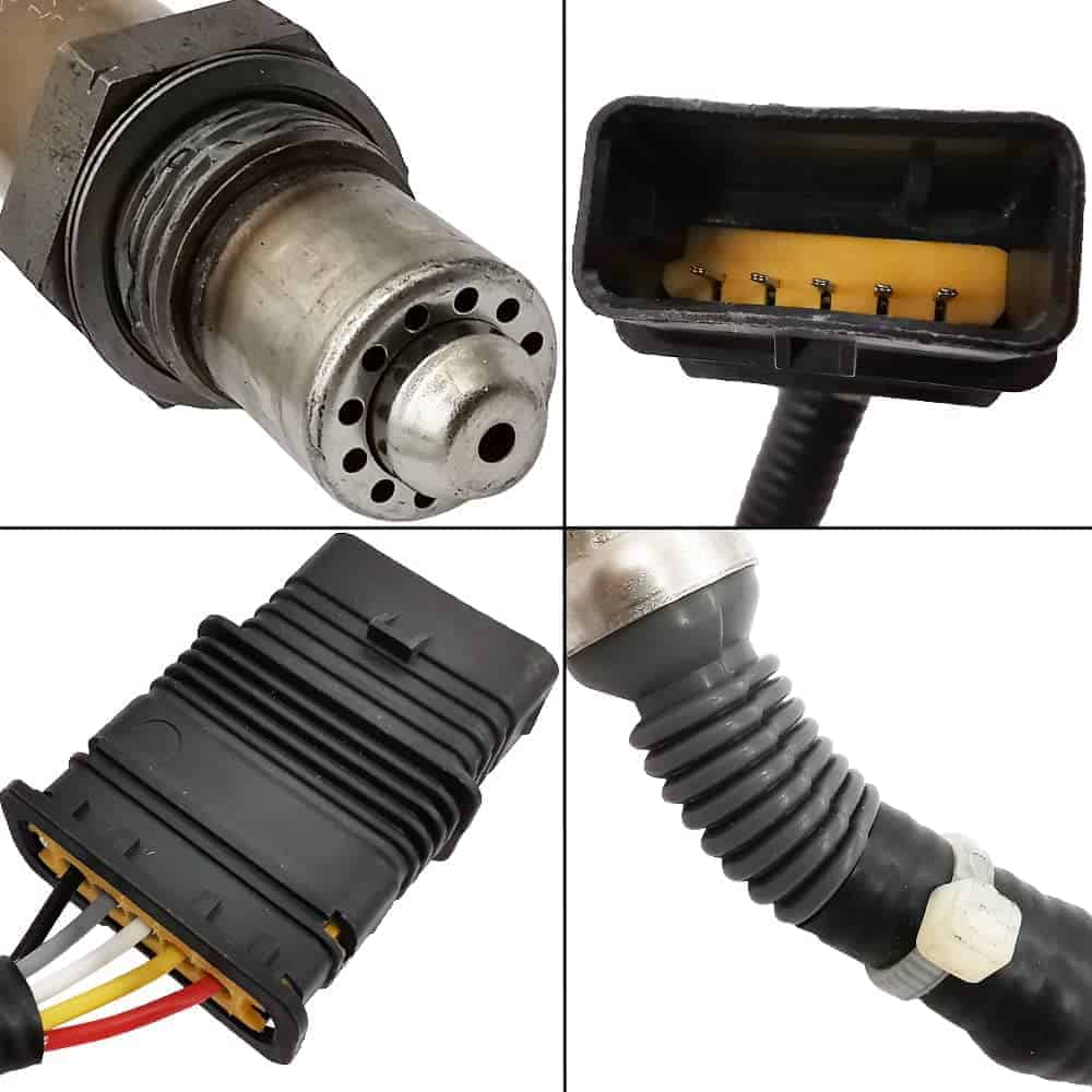 2. Colocación en el vehículo arriba y abajo Tipo de sensor: calentado. 11787589122 Número de cables: 4 cables. 11787589121 Número de cables: 5 cables. Longitud del arnés de cables 11787589121: 15,24 pulgadas.