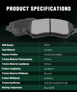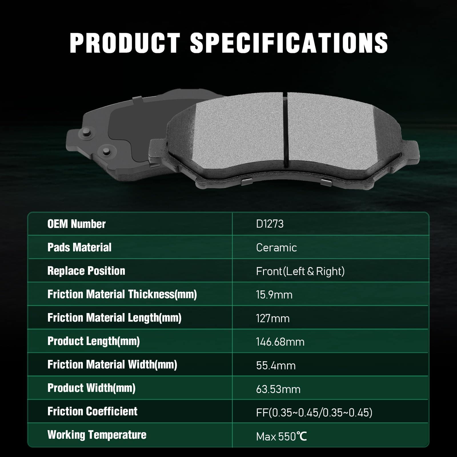 4 X Pastillas de Freno Cerámicas Delanteras – 68003701AA, D1273-8389