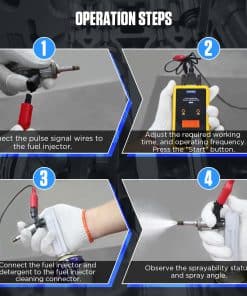AUTOOL CT60 probador y limpiador de inyectores de combustible es una máquina profesional especialmente diseñada para solucionar problemas comunes como inyectores de combustible atascados, bloqueados, con fugas o con combustión insuficiente. Con la capacidad de ajustar la frecuencia de trabajo, el tiempo de operación y otros parámetros, este kit de limpieza de inyectores de combustible es versátil y fácil de usar. La pantalla LCD muestra claramente la frecuencia y el tiempo de operación para una observación precisa del estado del inyector. La compatibilidad con inyectores estándar de gasolina y de alta presión en motores diésel lo convierte en una herramienta ideal para taller y mecánicos. Además, la garantía de tres años y el soporte técnico de por vida brindan tranquilidad a los clientes. Con AUTOOL CT60, manten tu motor funcionando en óptimas condiciones y maximiza su rendimiento.