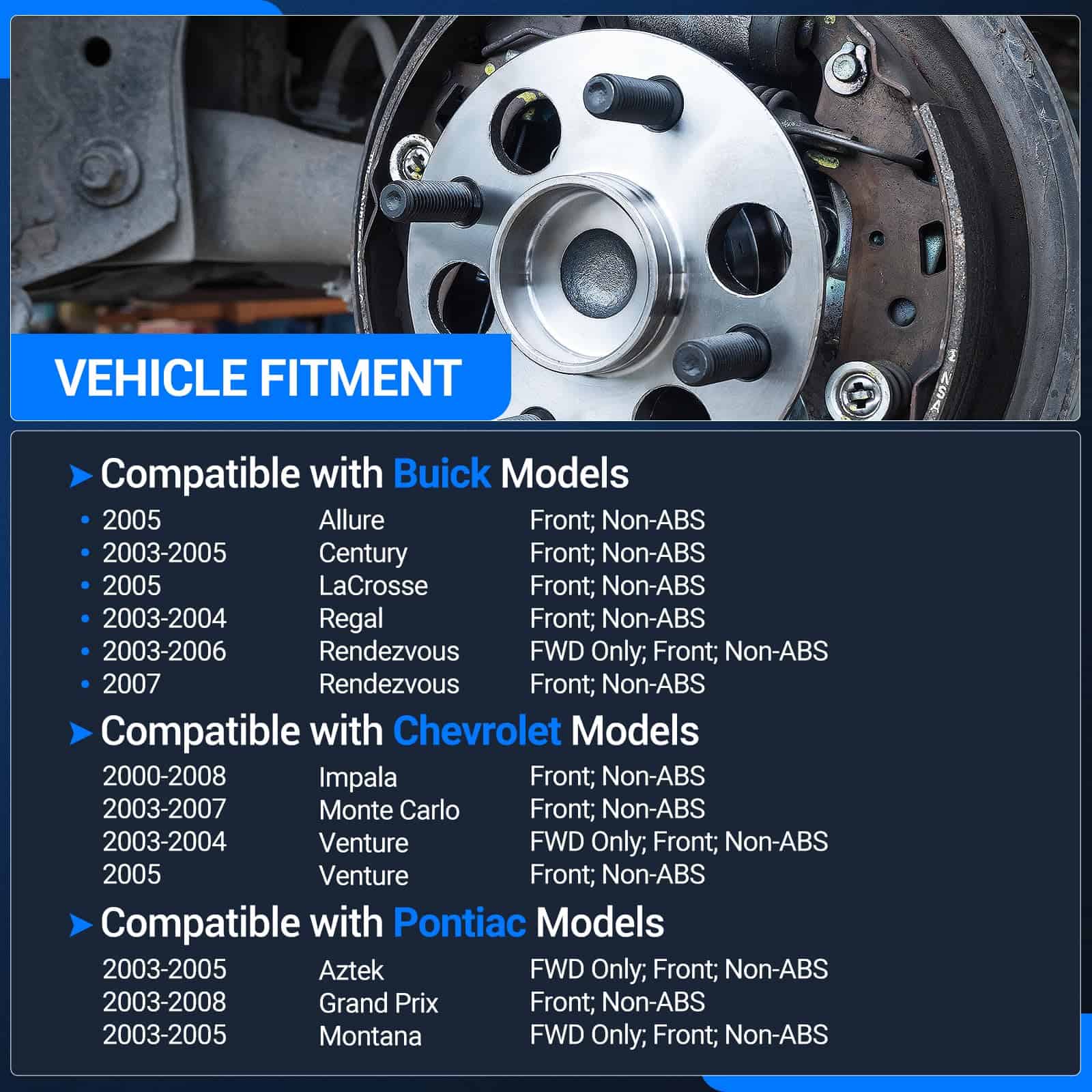 Ensamblaje de Cubo de Rueda y Rodamiento 513203 de Autoround para Chevy Impala 00-08, Buick Regal 03-07, Pontiac Grand Prix 03-08, con 5 Lengüetas y Sin ABS. Reemplazo de alta calidad para varios modelos de Buick, Chevy, y Pontiac. El diámetro del manguito es de 5.73 pulgadas, con un desplazamiento del manguito de 1.66 pulgadas y un diámetro del círculo de perno de 4.53 pulgadas. Reemplaza las piezas 513198, BR930363, HA590078, y 12413200. Este ensamblaje ha sido probado en calidad para cumplir o superar los estándares de rendimiento OEM. La instalación es sencilla y rápida, con un rendimiento excepcional. Autoround se compromete a seguir mejorando para ofrecer productos de mayor calidad a precios más accesibles para que los vehículos funcionen de manera segura y duradera.